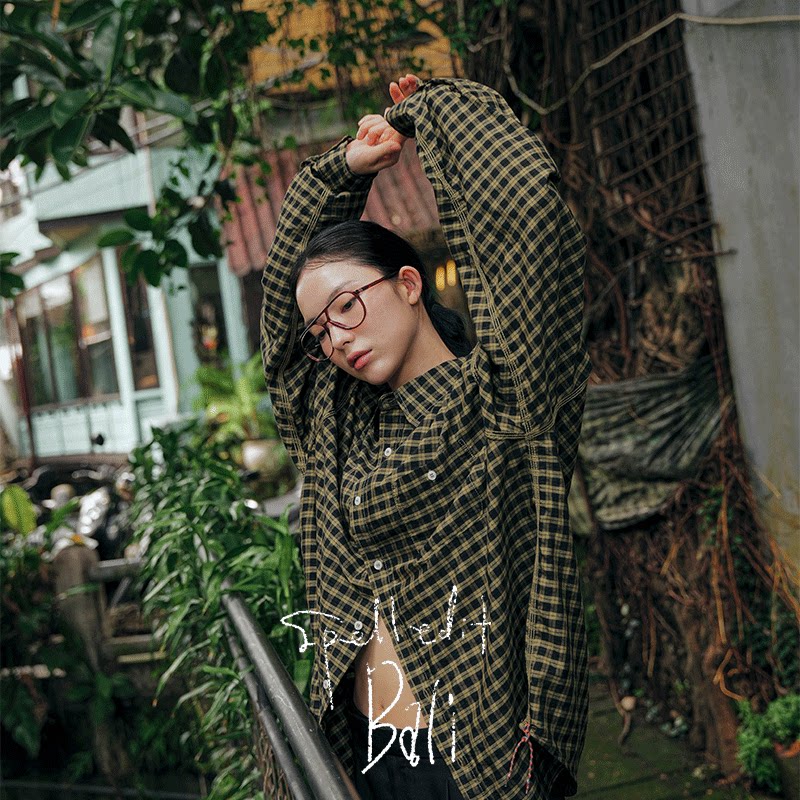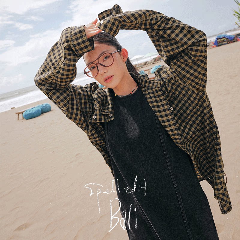 长袖 SPELLEDIT2026年春季 新品 复古格纹衬衫 子上衣女 高质复古风格