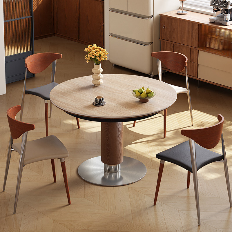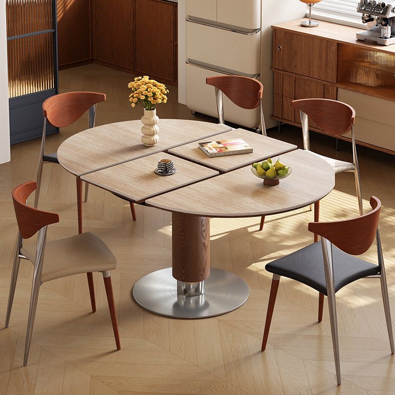 帕沙曼全托底板岩板餐桌家用小户型可伸缩胡桃木色实木脚可变圆桌