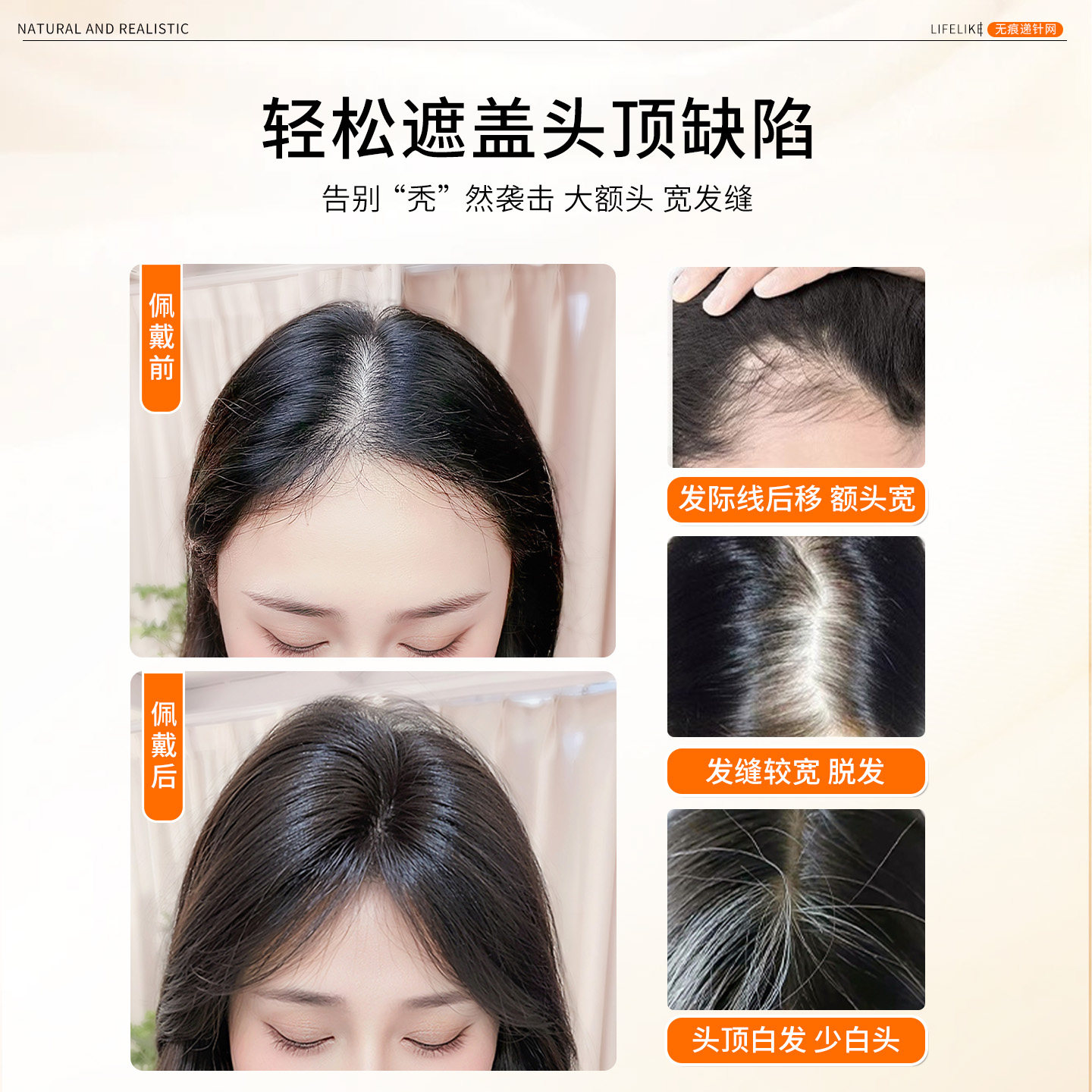 为您提供商品自然隐形补发片 递针假发女片头顶补发蓬松真发增发量遮白发一片式的详细介绍,