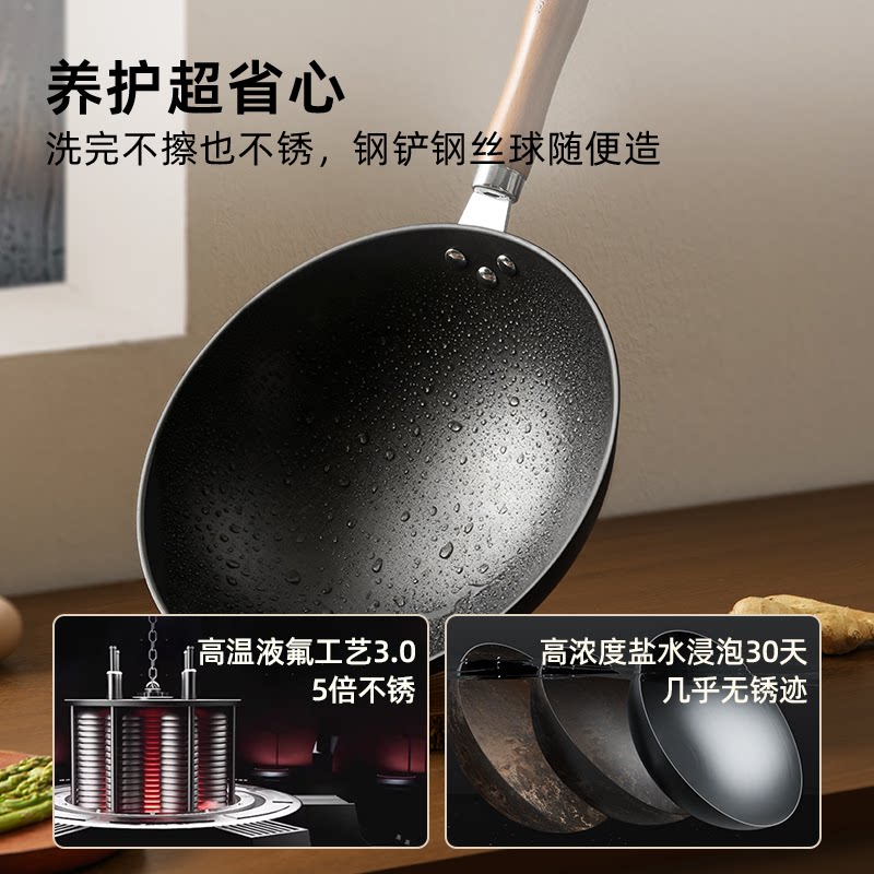 九阳铁锅无涂层炒锅家用炒菜锅不易粘锅电磁炉专用燃气灶旗舰店炊