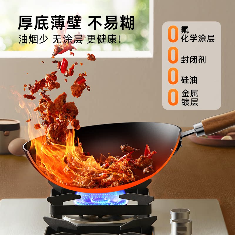 炒锅家用不粘锅无涂层燃气灶适用 章丘炒菜锅传统铁锅官方旗舰老式