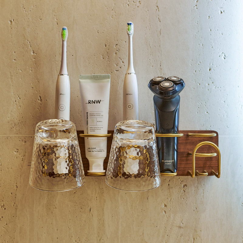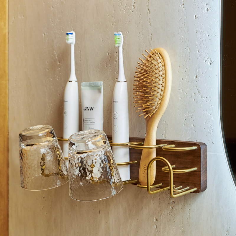 为您提供商品电动牙刷置物架卫生间实木轻奢免打孔浴室放牙杯牙膏收纳架壁挂式的详细介绍,
