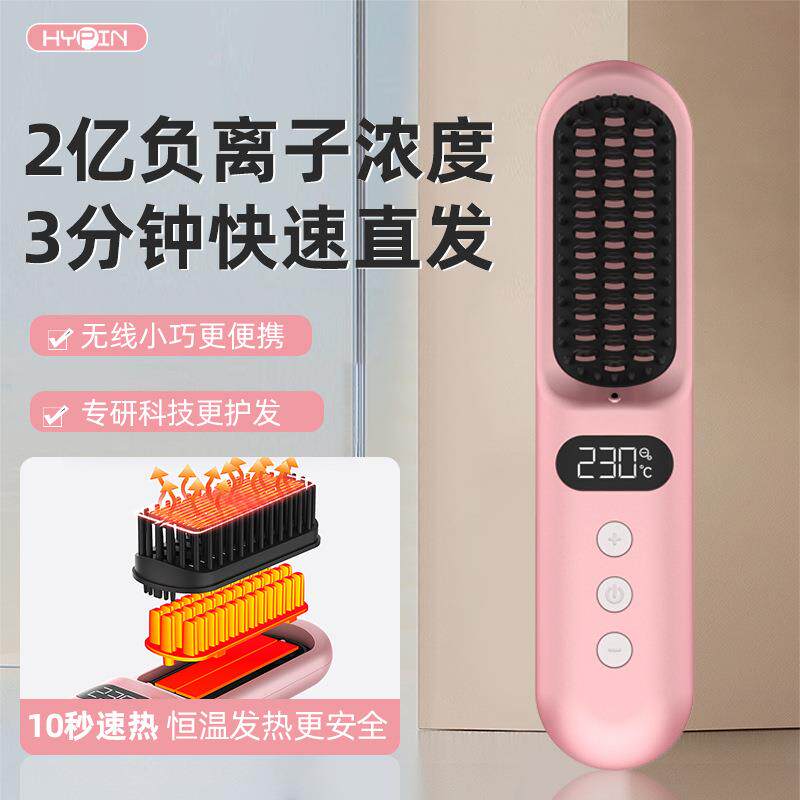 无线负离子直发梳大容量电池超长续航直发内扣刘海高颅顶