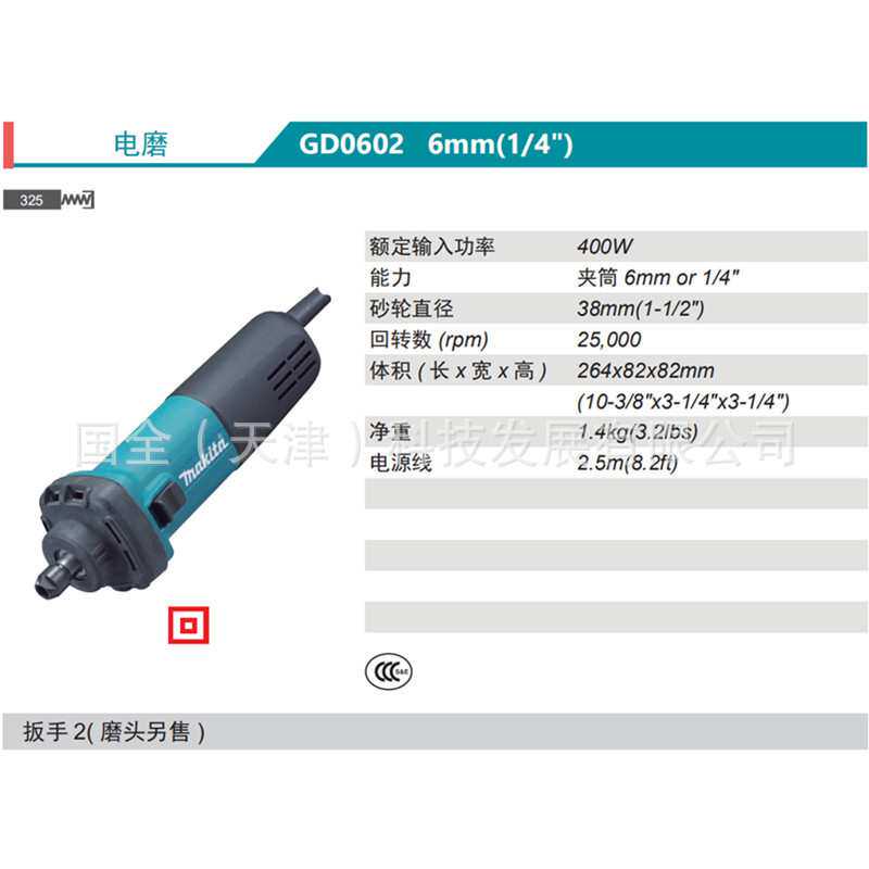 Makita牧田电动工具GD0602电磨6mm夹头功率400W转速25000重1.4Kg由