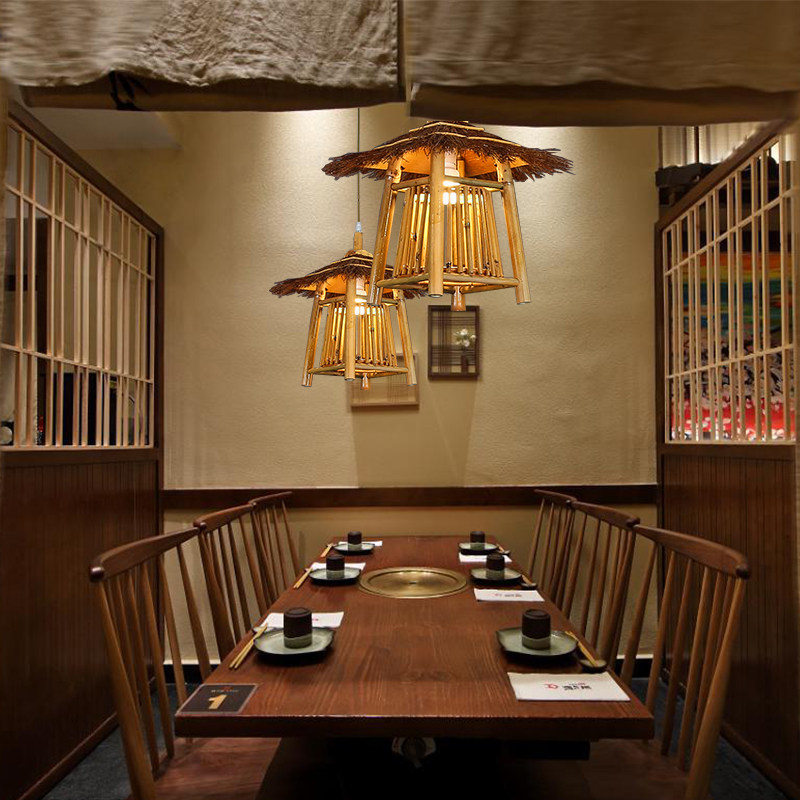竹艺吊灯中式 民宿店铺手工竹房子灯饰 复古茶室餐厅阳台灯创意个性