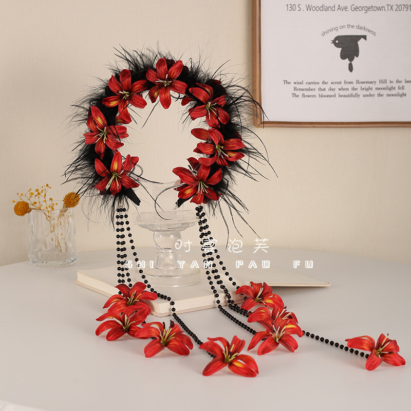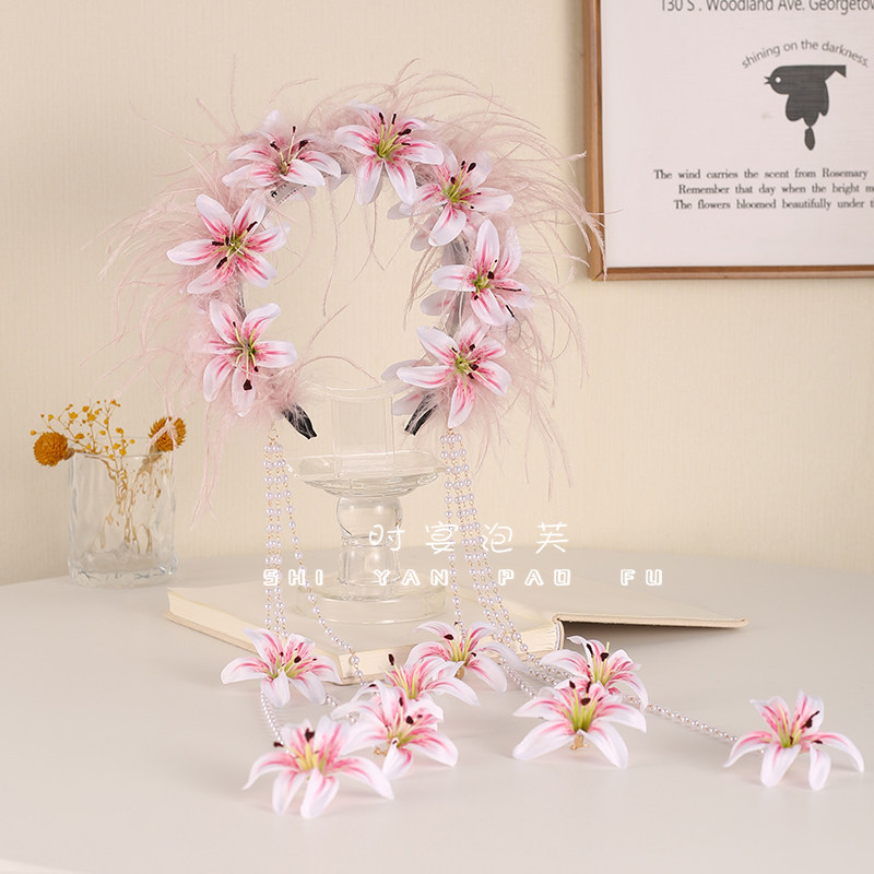 簪花发箍超仙灵动发箍流苏花朵羽毛精致欧若风压发箍 时宴泡芙由