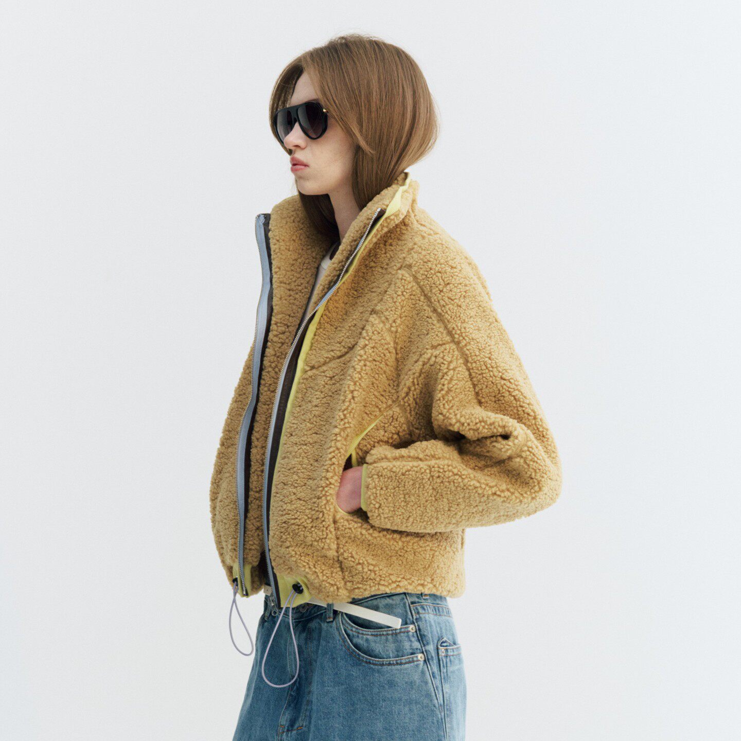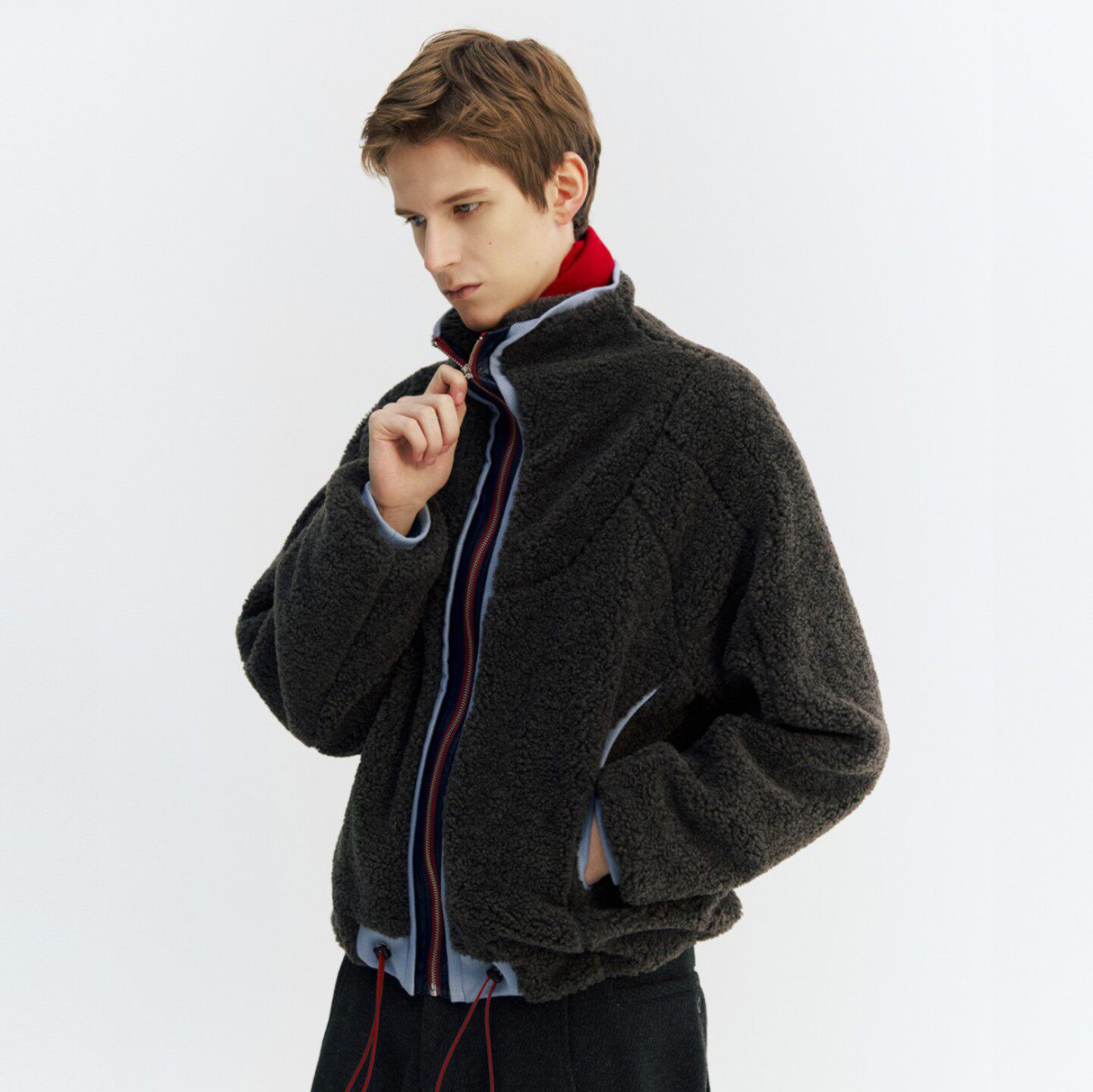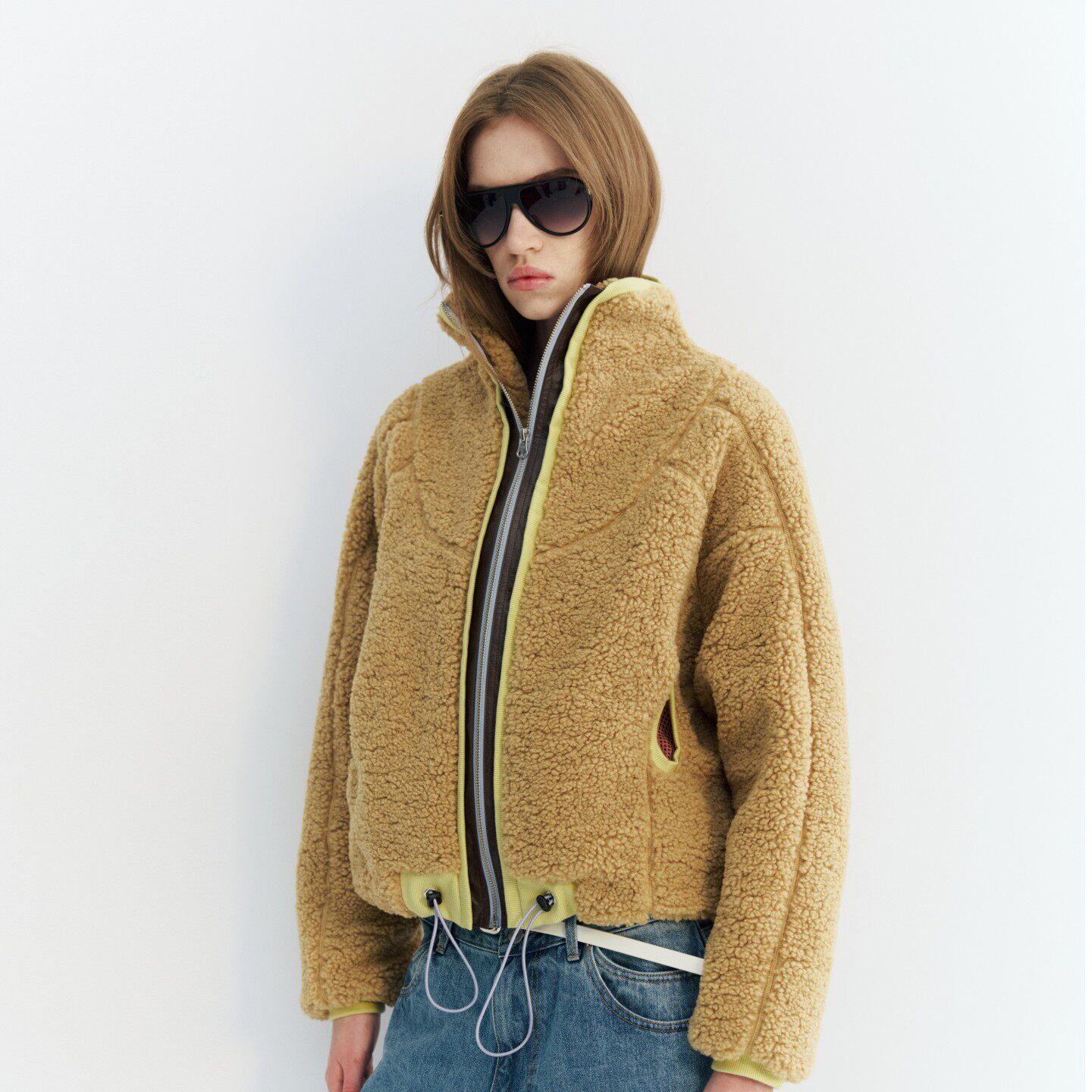 撞色罗纹撞色拼接颗粒绒感羊羔绒茧型外套锁温抗寒棉衣 NORYBRAND由