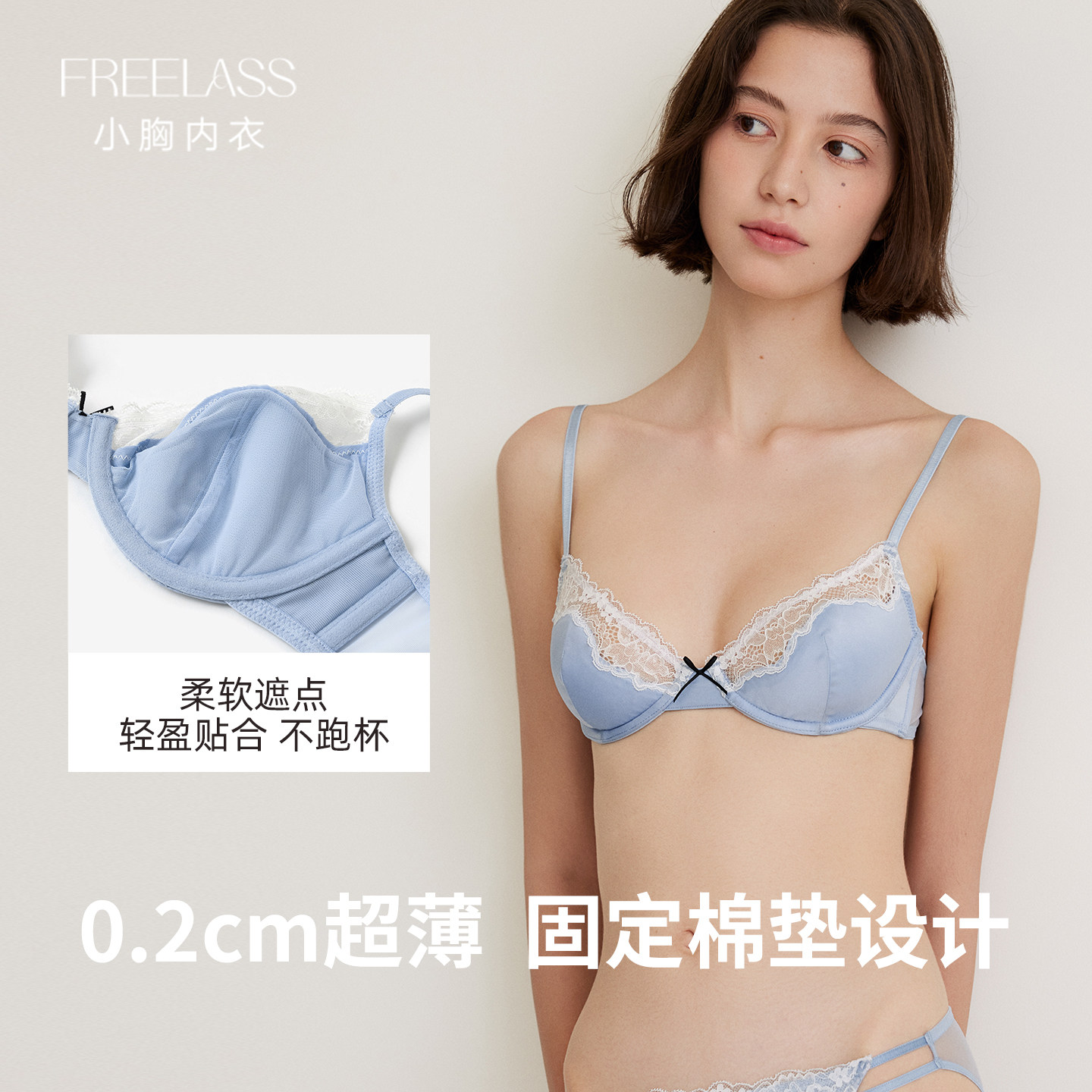 为您提供商品弗利少女法式 内衣缎面蕾丝拼接软钢圈超薄文胸小胸性感胸罩套装的详细介绍,