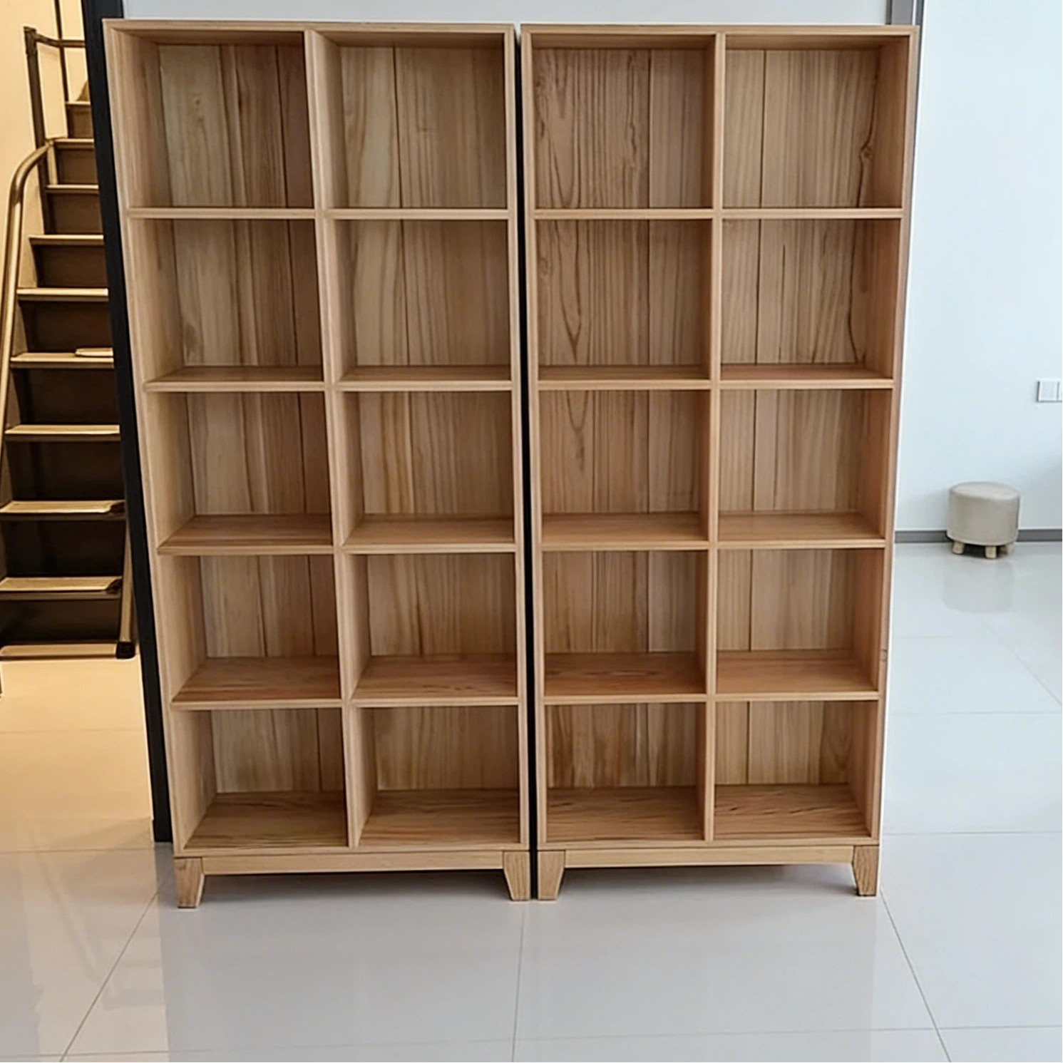 原木满整墙 纯实木书架组合全红橡木置物架书柜简约高开放式由