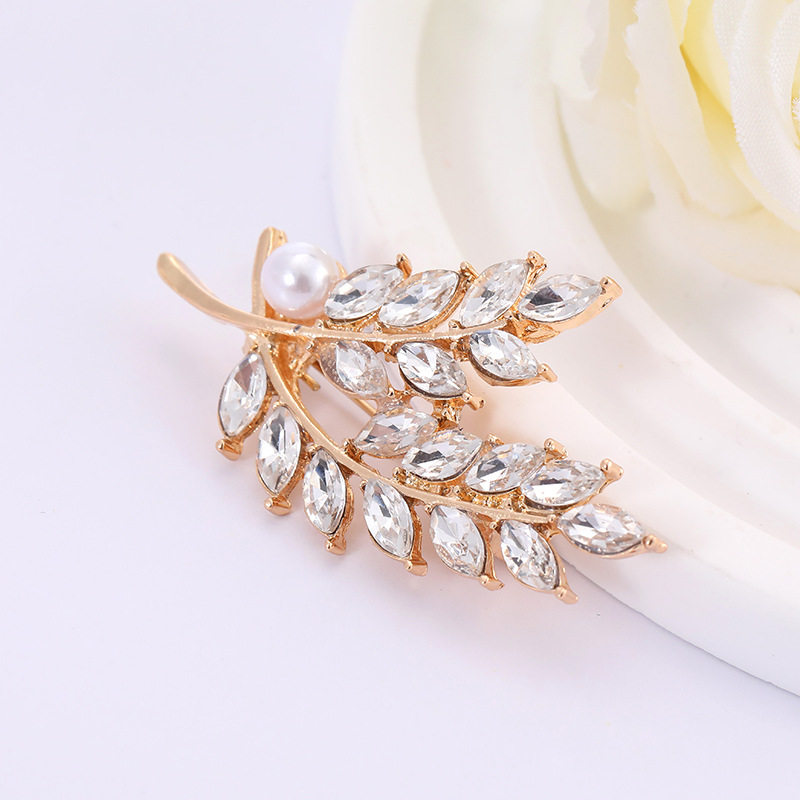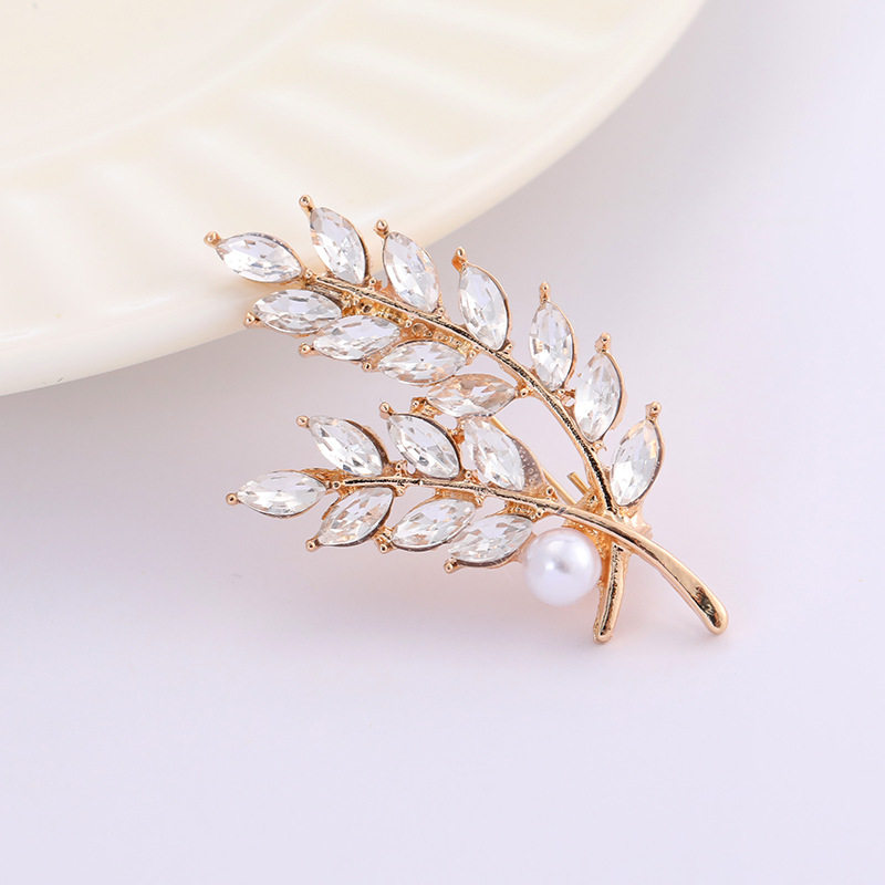 为您提供商品礼服百搭配饰 优雅金色麦穗胸针高档珍珠水钻叶子造型胸花男女西装的详细介绍,