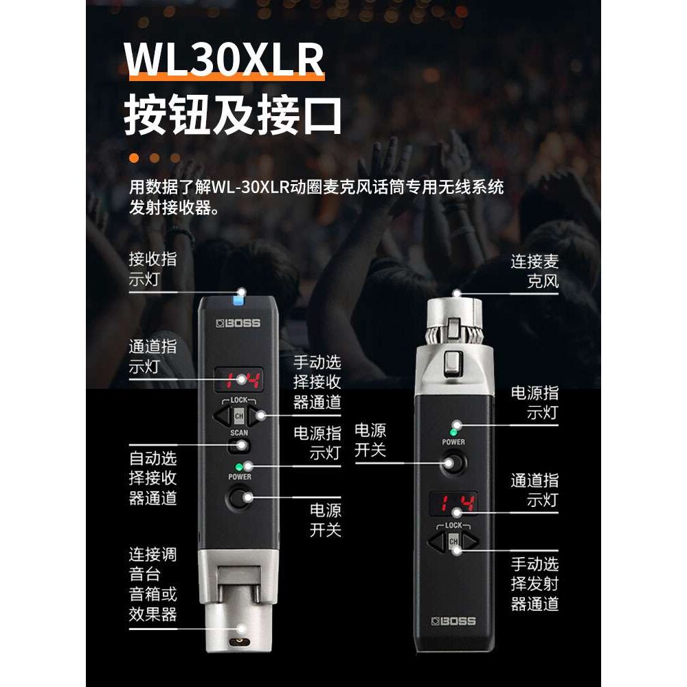 为您提供商品WL30XLR话筒专用无线系统发射接收器动圈麦克风即插即用 罗兰Boss的详细介绍,
