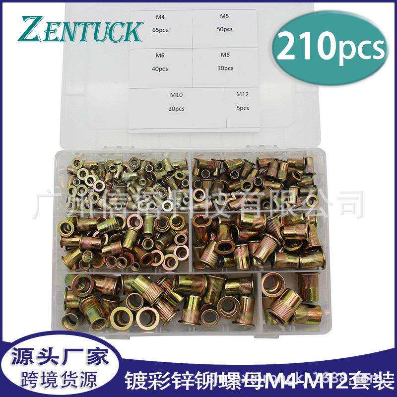 为您提供商品镀彩锌平头柱纹拉铆螺母M4 210PCS盒装 12组合 跨境的详细介绍,