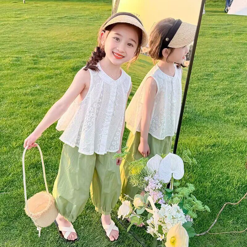 时髦洋气女孩宝宝薄款 2025新款 夏季 夏装 无袖 两件套儿童装 女童套装