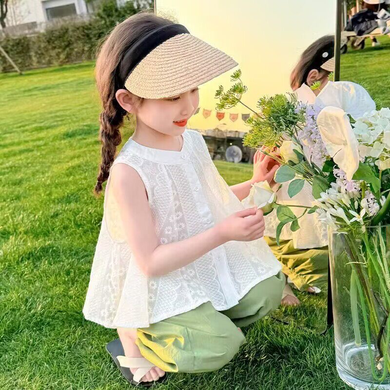 时髦洋气女孩宝宝薄款 2025新款 夏季 夏装 无袖 两件套儿童装 女童套装由