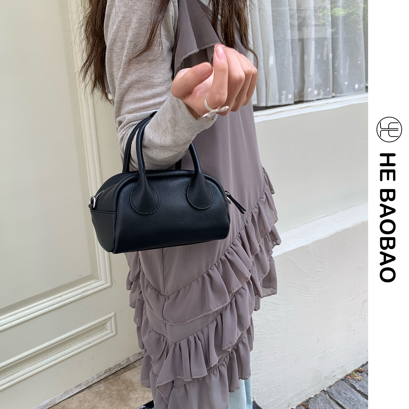 为您提供商品HEBAOBAO新品 春夏保龄斜挎包球手拎手机女包 真皮小包2026新款的详细介绍,
