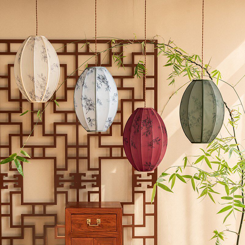 复古灯笼布艺饭店包间餐厅书房卧室茶室灯具吊灯 物几空间新中式