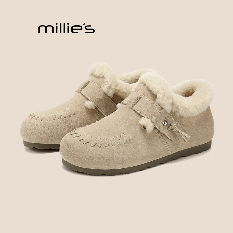 外穿包头毛毛拖鞋 MILLIE 雪地靴Z 加厚棉鞋 女冬季 妙丽加绒勃肯鞋