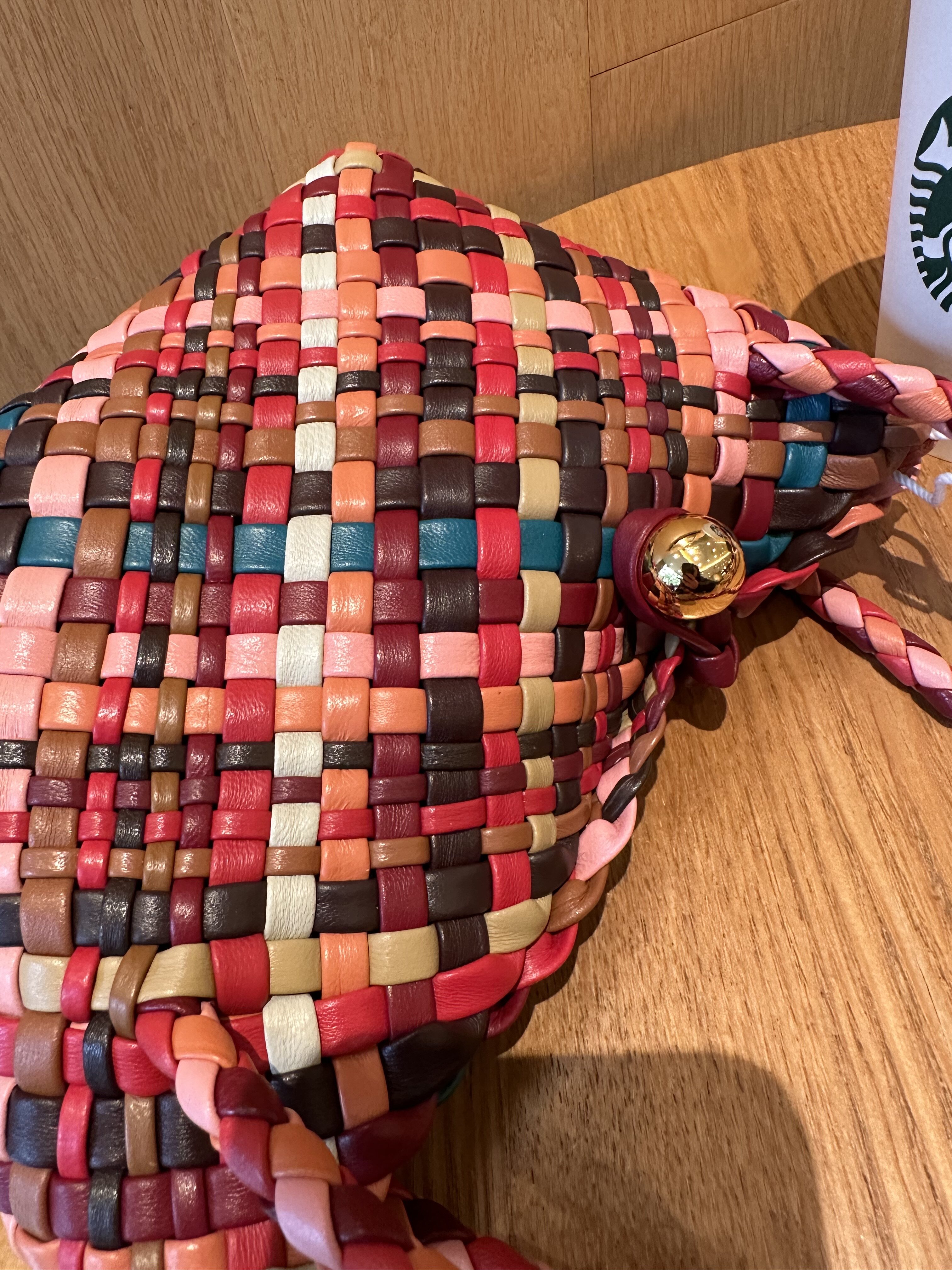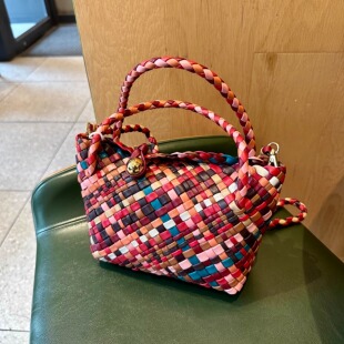 为您提供商品真皮编织包女简约百搭单肩斜挎小包彩色羊皮小金球 2025新款的详细介绍,