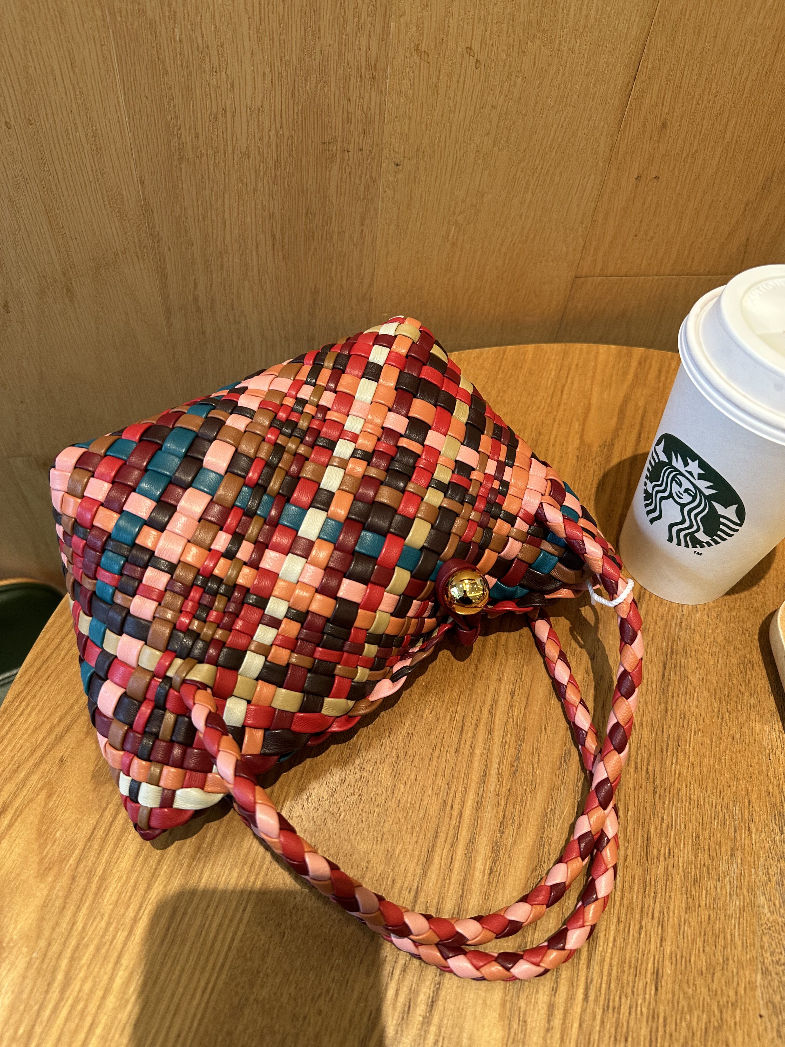 真皮编织包女简约百搭单肩斜挎小包彩色羊皮小金球 2025新款