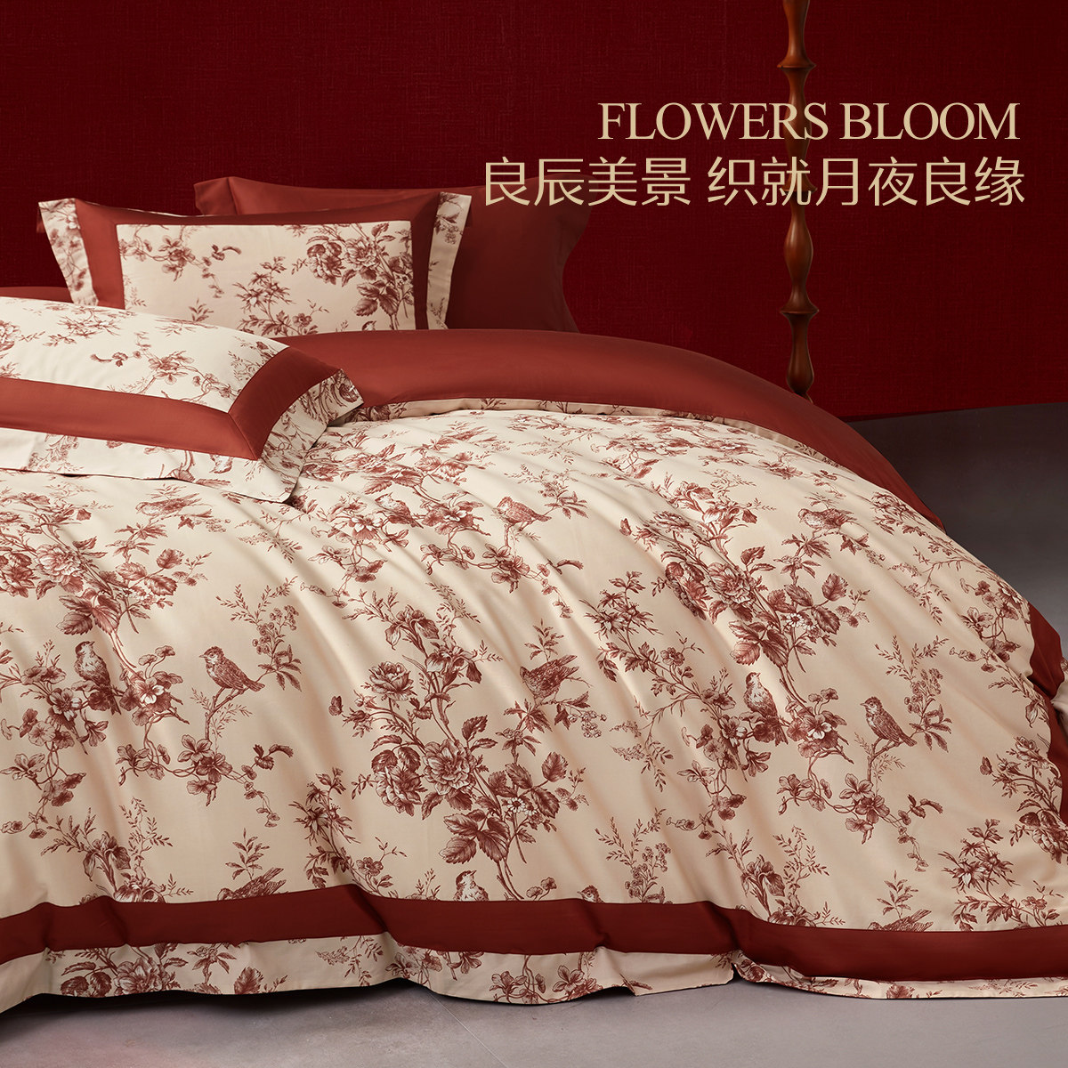 为您提供商品水星家纺全棉婚庆四件套60支长绒棉喜庆大红套件婚嫁轻奢床上用品的详细介绍,