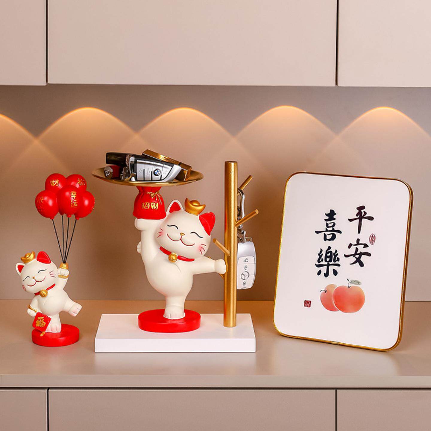 招财猫钥匙收纳玄关装 柜客厅家居乔迁新居礼品 饰品摆件入户门口鞋