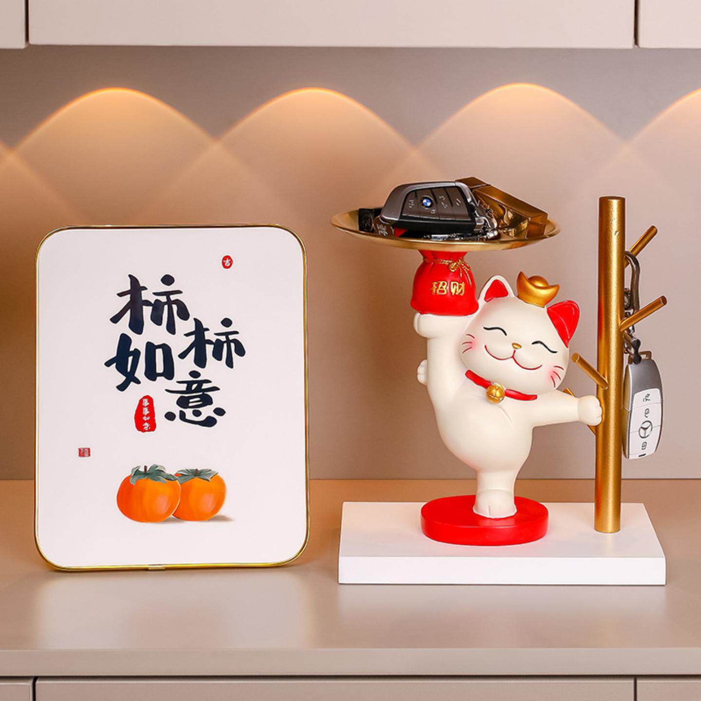 入户玄关摆件钥匙收纳可爱招财猫2025新款 饰品乔迁礼物 家居客厅装