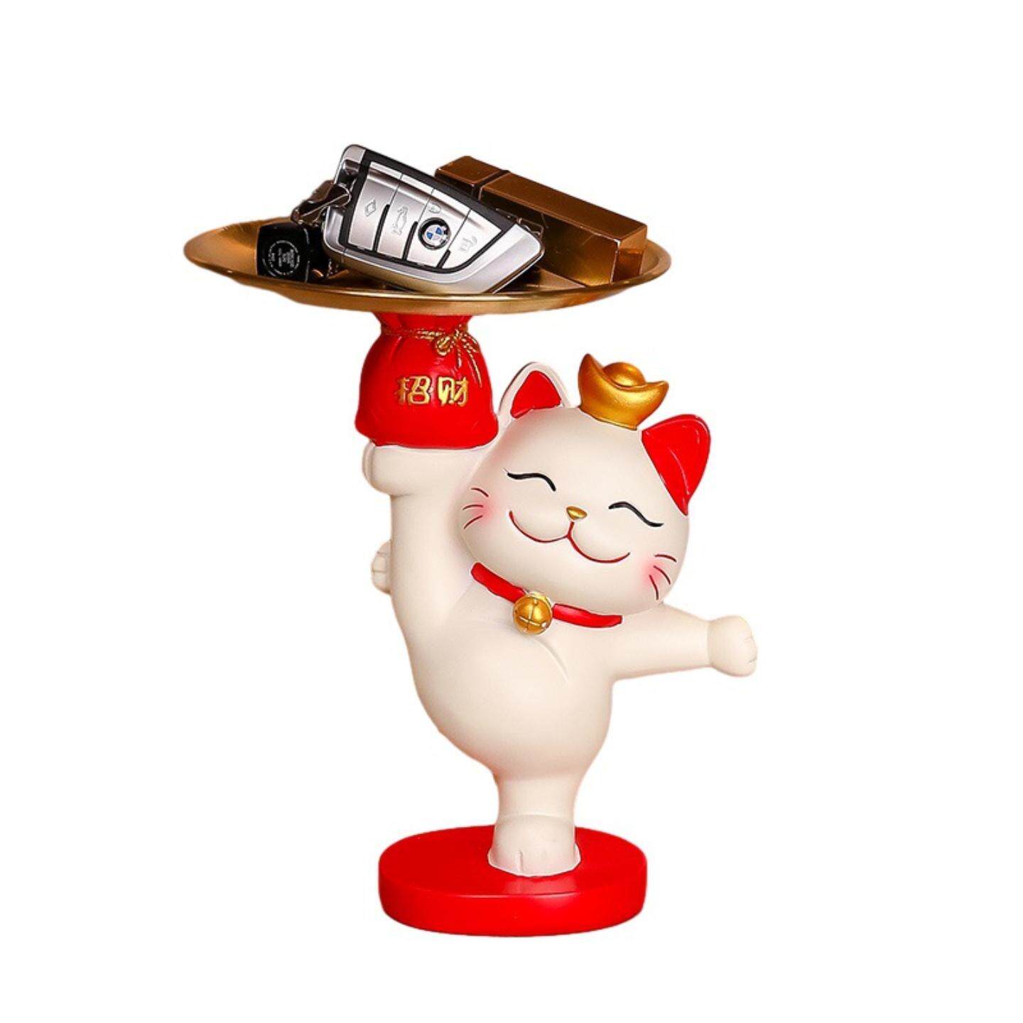 饰品搬家乔迁新居礼物 招财猫玄关钥匙收纳摆件入户家居客厅托盘装