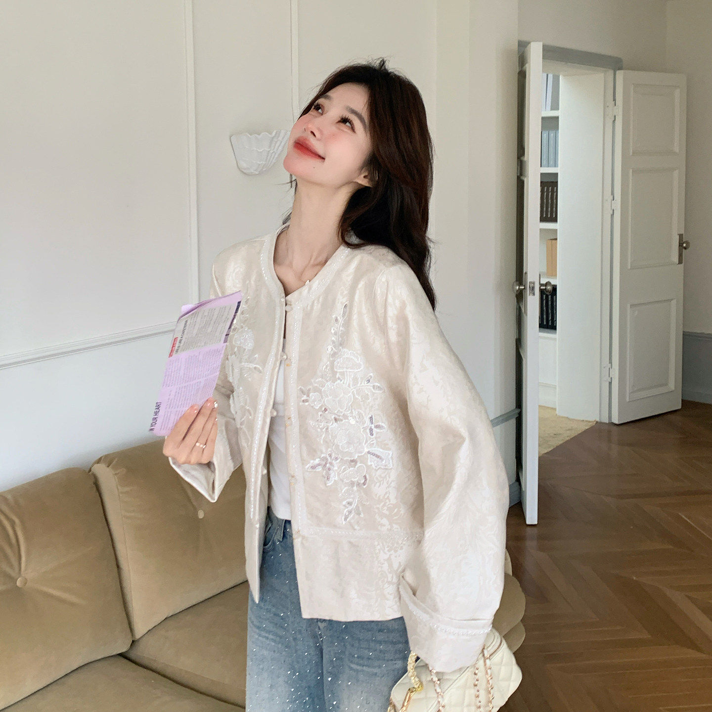 为您提供商品新中式 高端洋气国风圆领上衣 小众轻奢高级感提花外套女2026春新款的详细介绍,