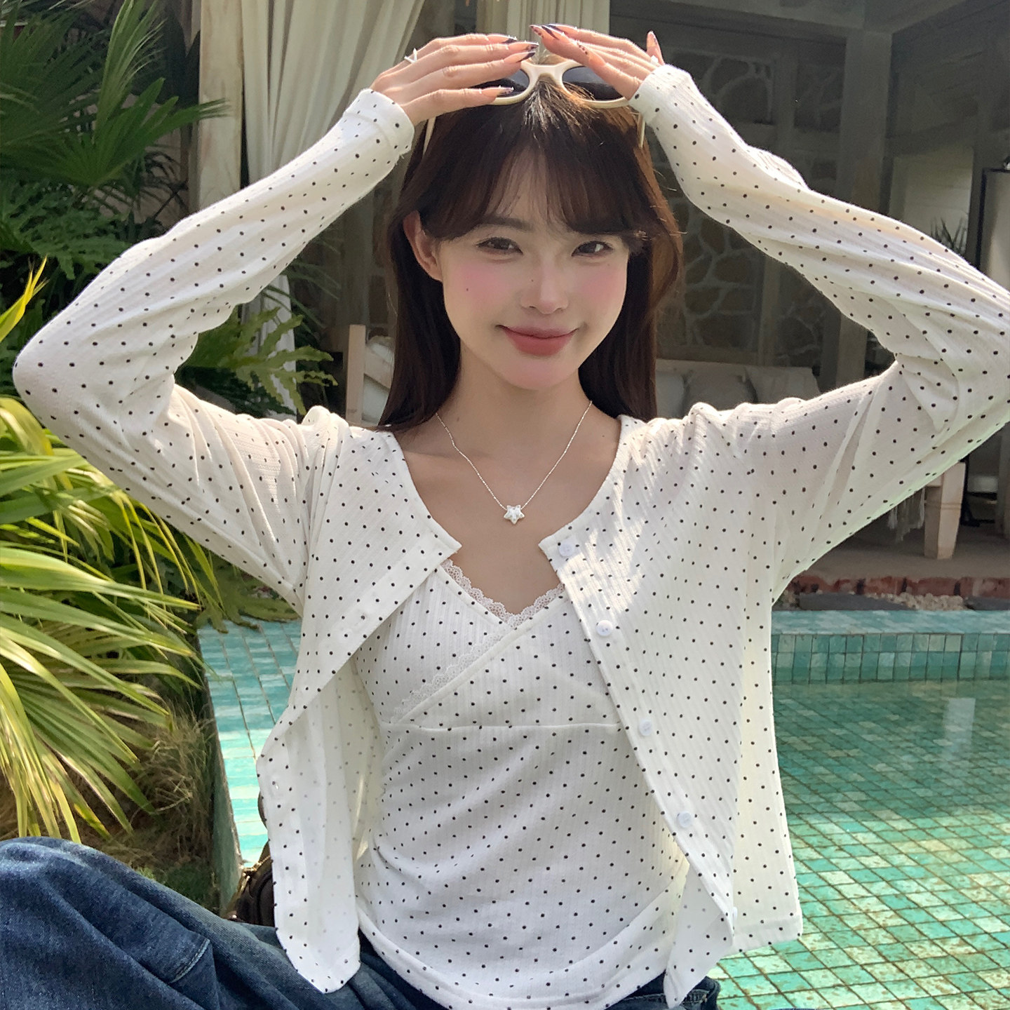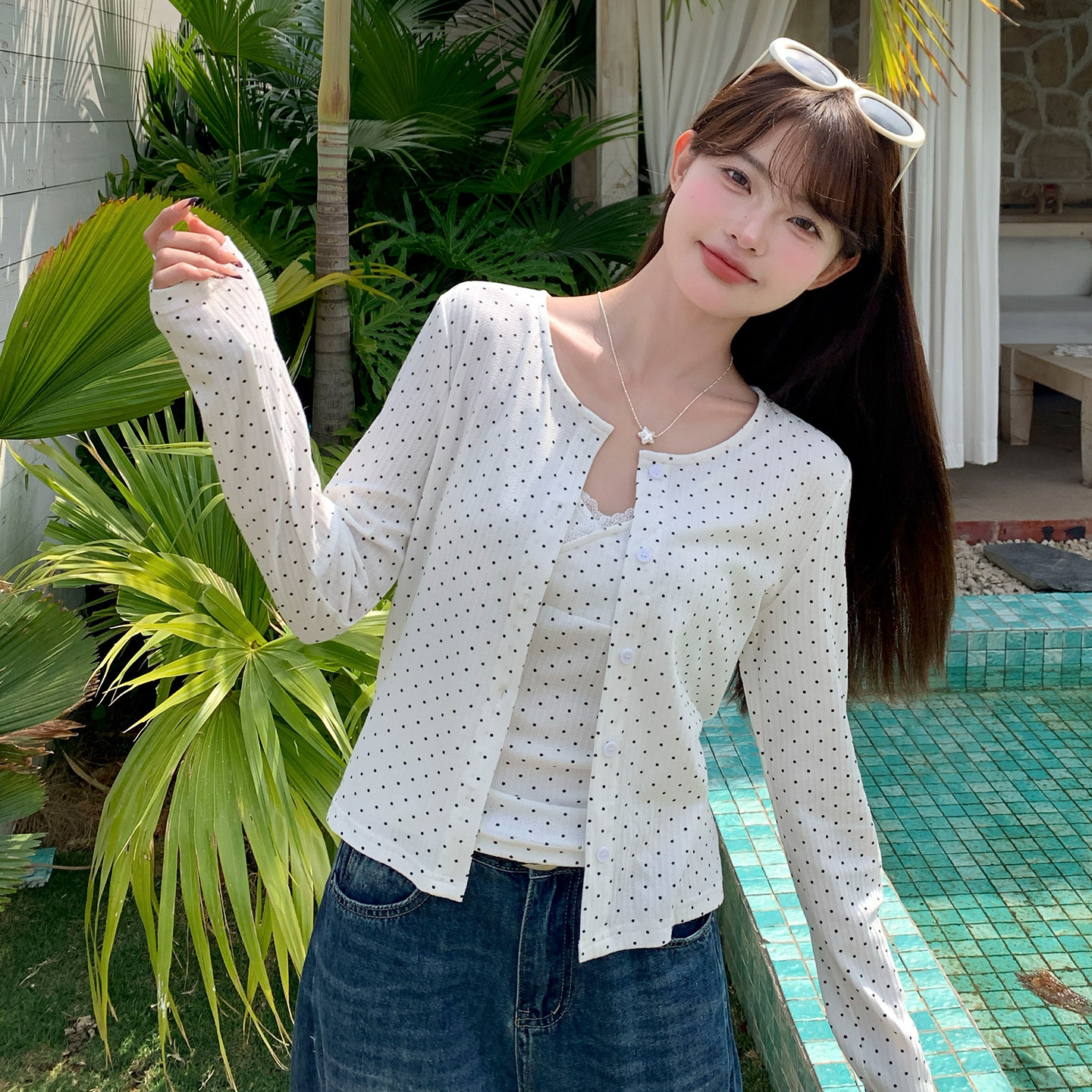 为您提供商品气质漂亮套装 蕾丝吊带两件套女叠穿2026早春新款 龙妹白色波点开衫的详细介绍,
