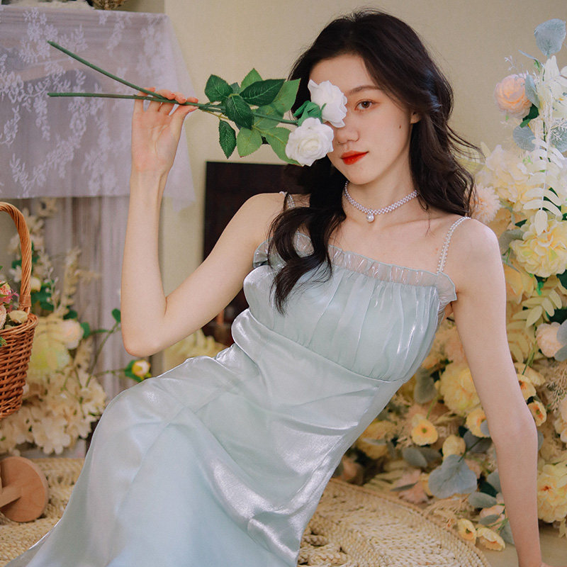 国风长款 Ti提提 旗袍春夏气质长裙 改良无袖 港工中式 灼灼 淡蓝色
