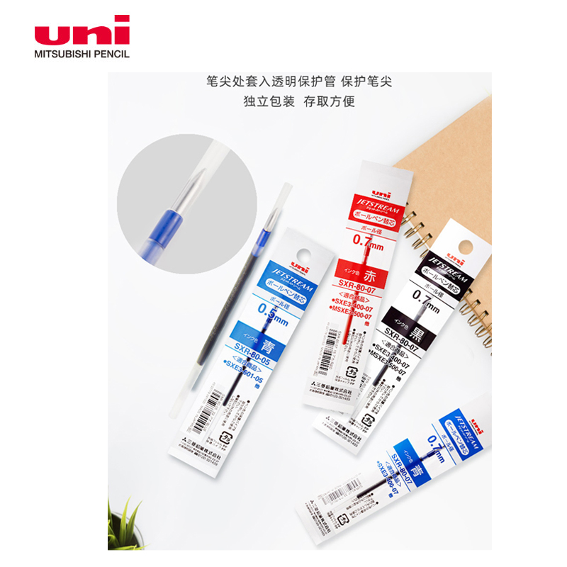 日本uni三菱SXR 0.38MM 2005替芯 进口三菱笔替芯 0.7MM 1000 07中油笔芯学生办公圆珠笔芯0.5MM MSXE5由