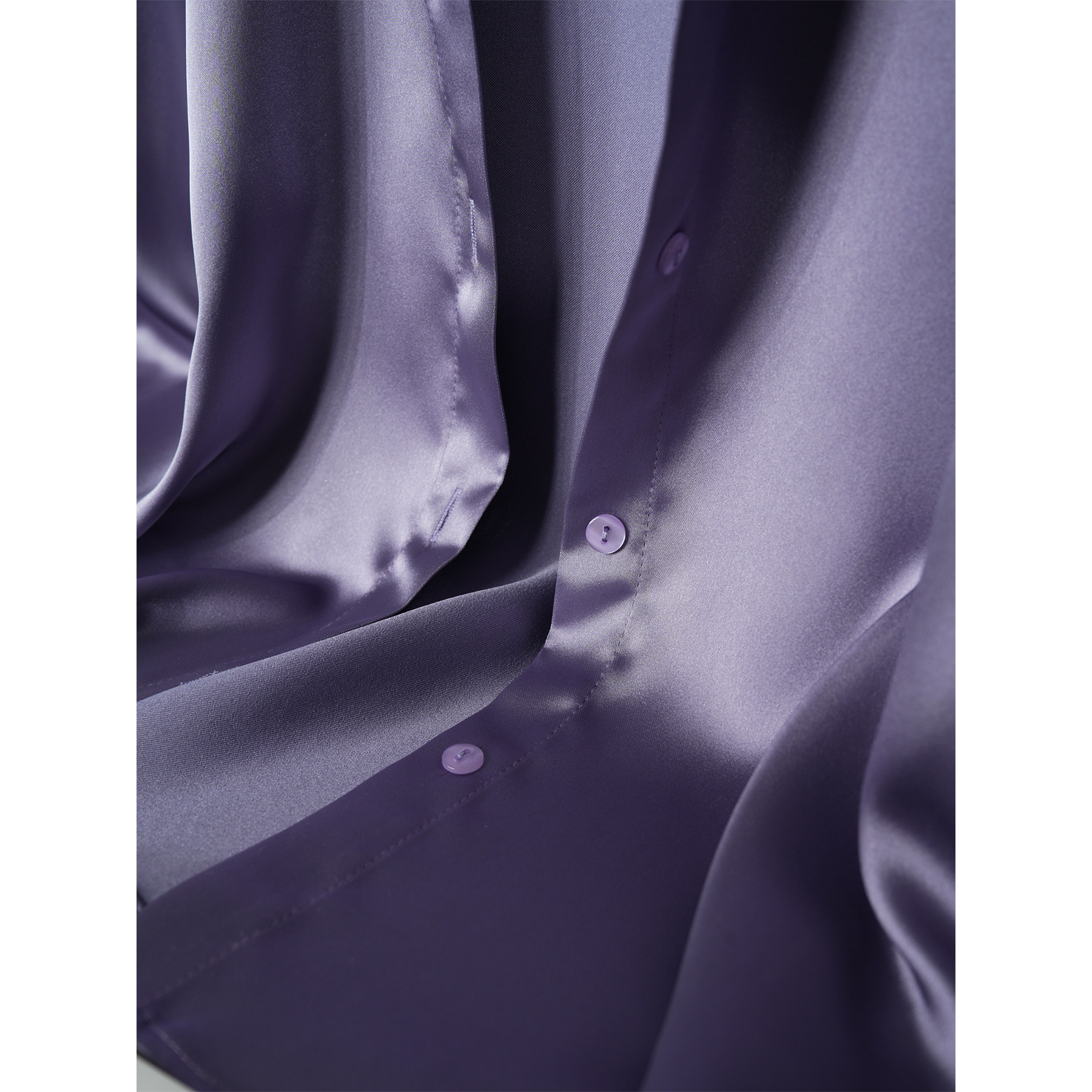 宽松版 通勤垂感抗皱大码 中性复古衬衫 女 薰衣草紫珠光缎面长袖