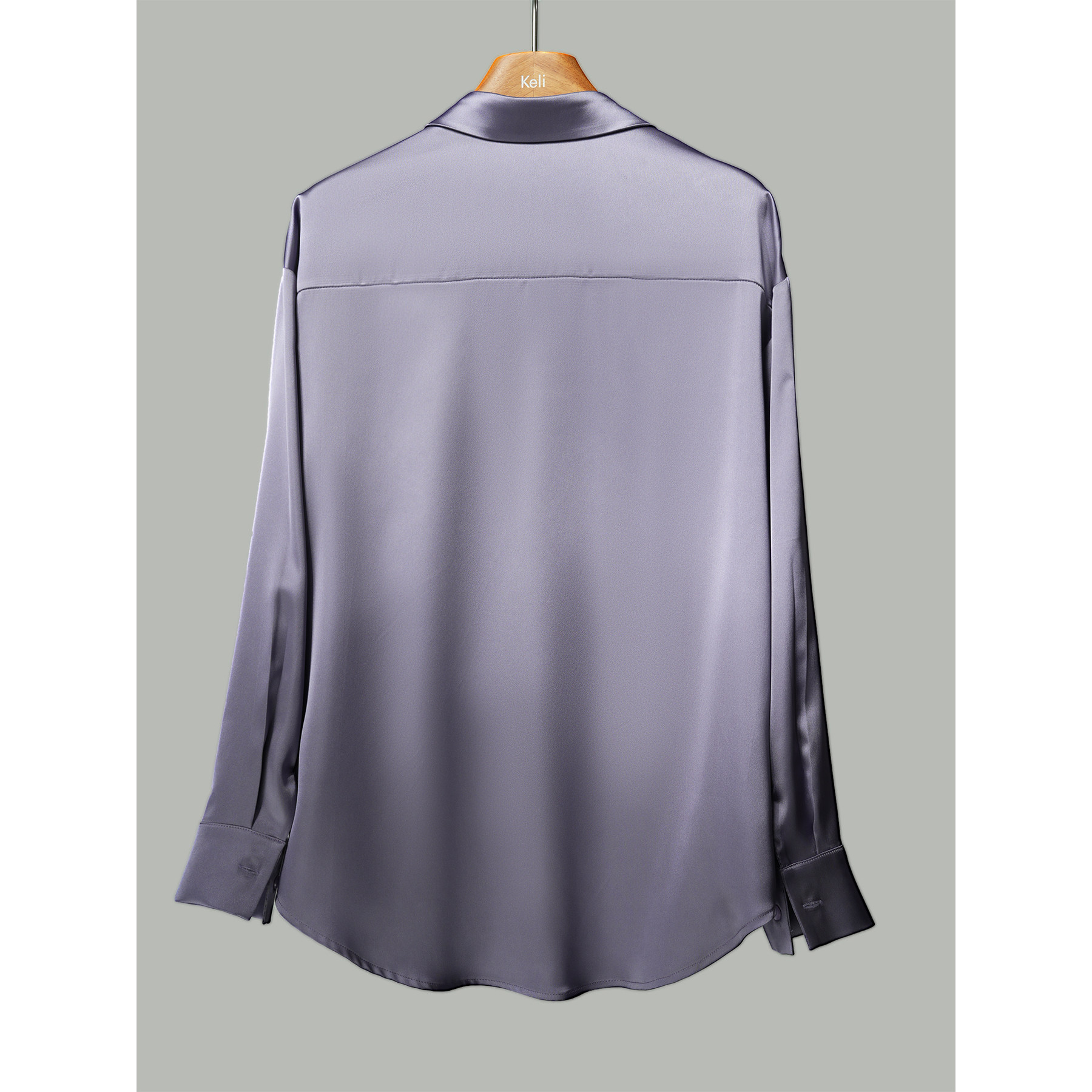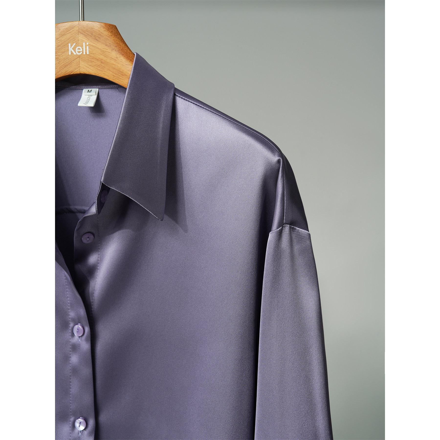 宽松版 通勤垂感抗皱大码 中性复古衬衫 女 薰衣草紫珠光缎面长袖由