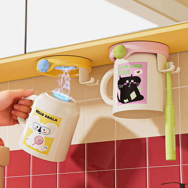 洗漱口杯子倒挂刷牙杯镜柜下收纳壁挂免打孔牙缸 牙刷置物架磁吸式由