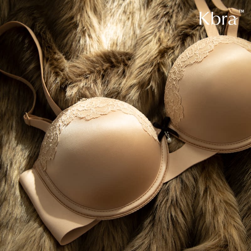 缎面蕾丝内衣女小胸聚拢显胸圆无痕收副乳防下垂文胸罩 Kbra法式