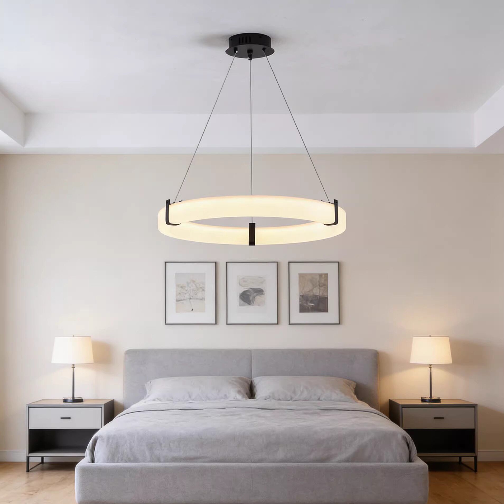 饭厅包厢圆餐桌设计师客厅灯具 餐厅圆环吊灯现代简约轻奢创意个性
