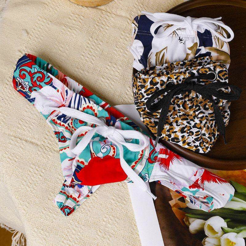 两条装 内裤 锦纶舒适透气比基尼低腰豹纹单丁字裤 性感运动 男士