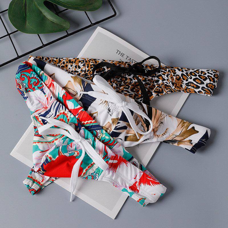 系绳调节性感T裤 丁字裤 男跨境货源欧美 冰丝印花泳裤 内裤 泳裤 男士