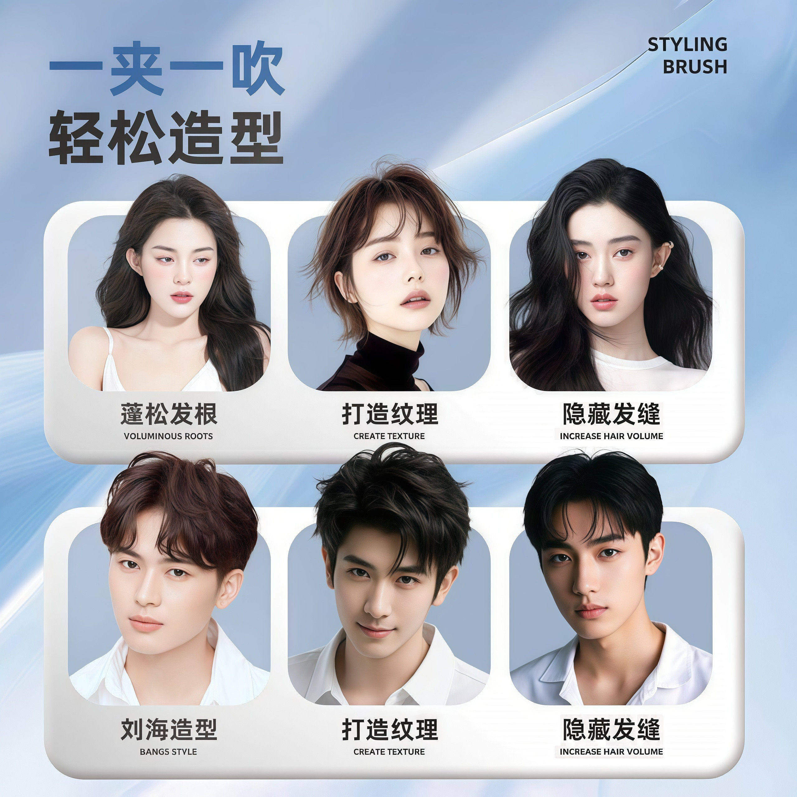 专用发缝遮盖刘海美发梳子 蓬松纹理造型梳高颅顶神器发根蓬松男士