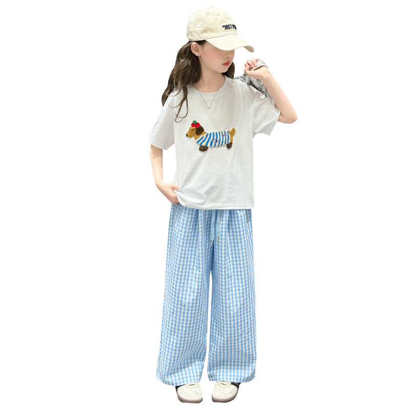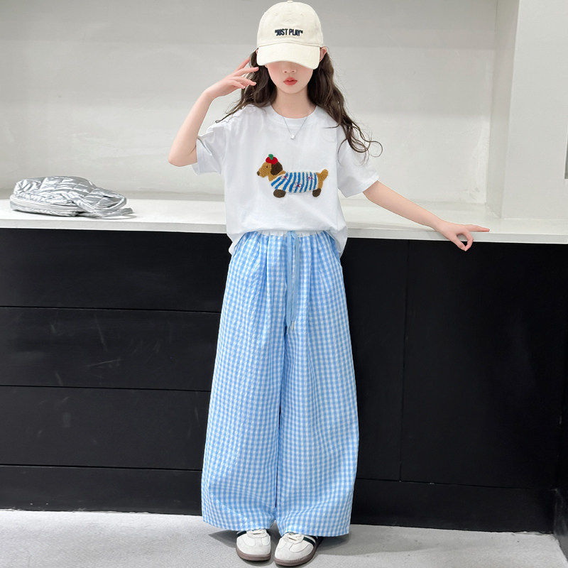 洋气儿童格子裤 女童夏装 套装 短袖 夏天大童时髦休闲两件套 2026新款