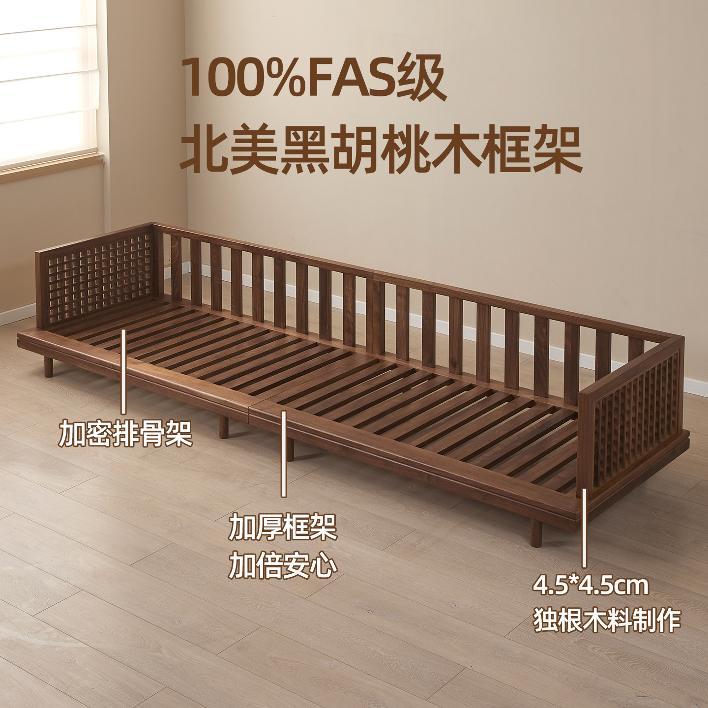 胡桃木国风雕花实木沙发现代简约家用冬夏两用可储物家具 新中式