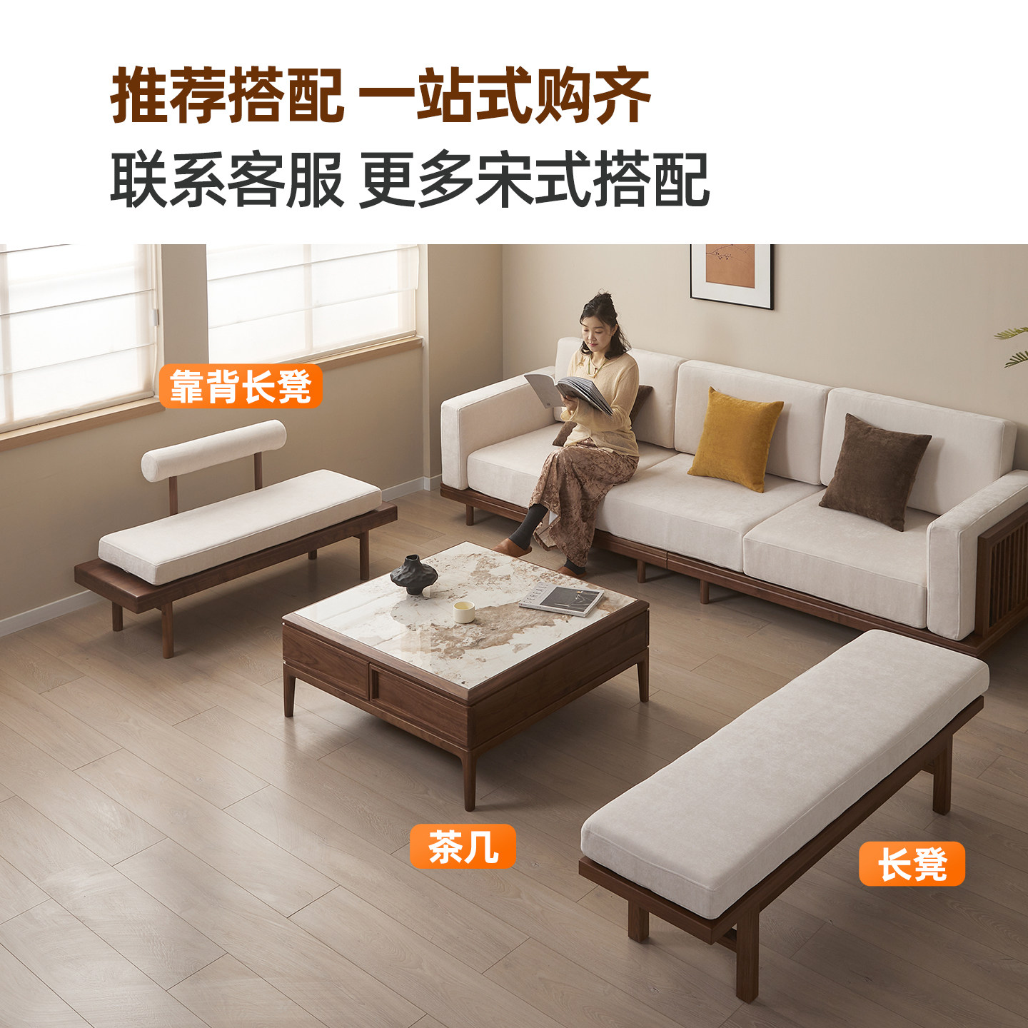 宋式 沙发轻奢高级全套家具 美学实木沙发组合客厅直排沙发新中式