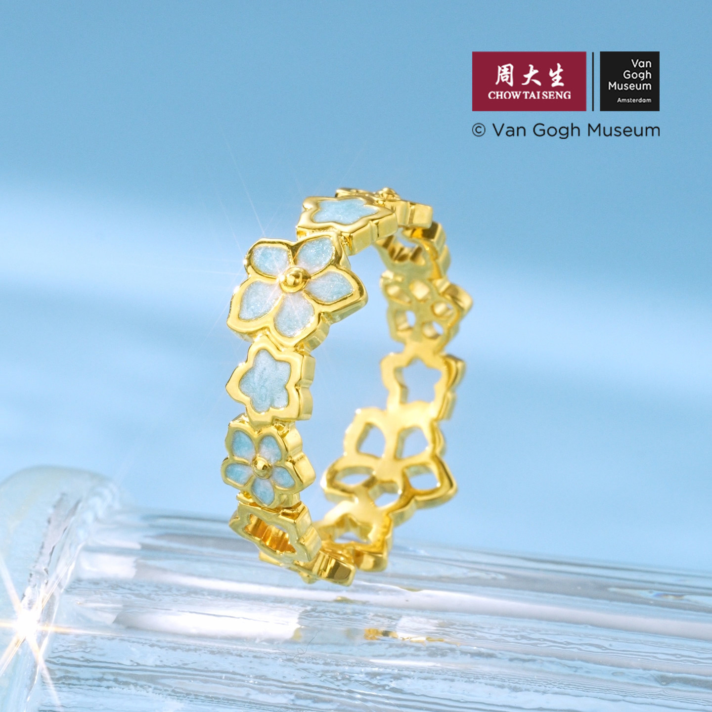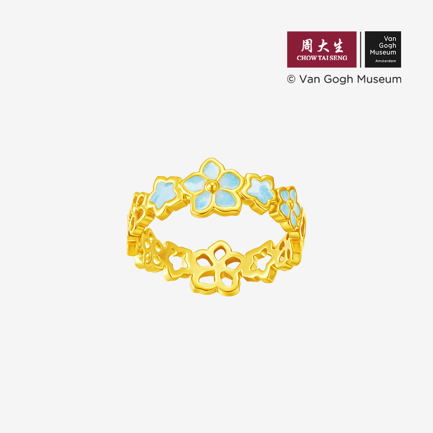 黄金戒指女足金杏花星星手饰活口生日礼物送女友 周大生梵高联名由