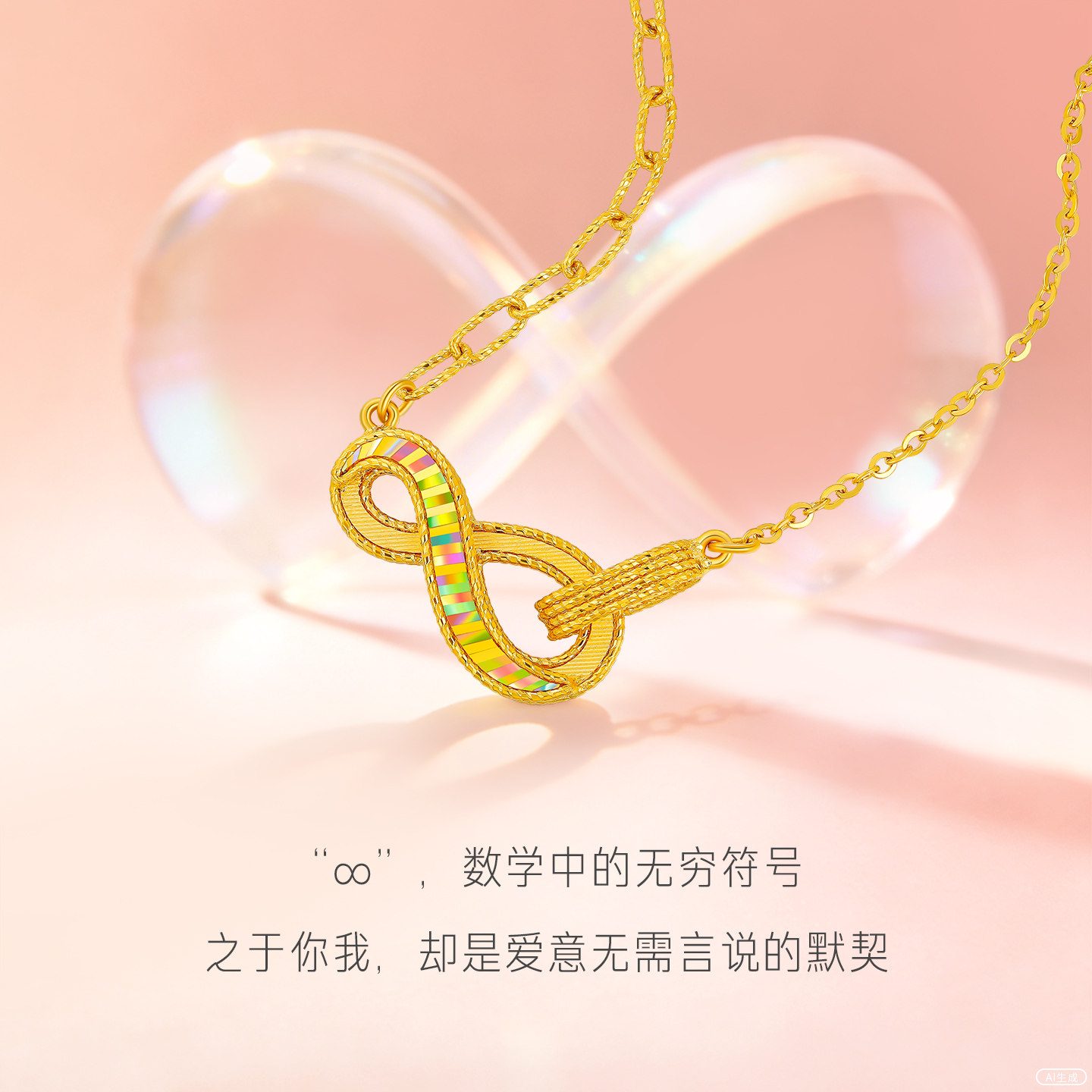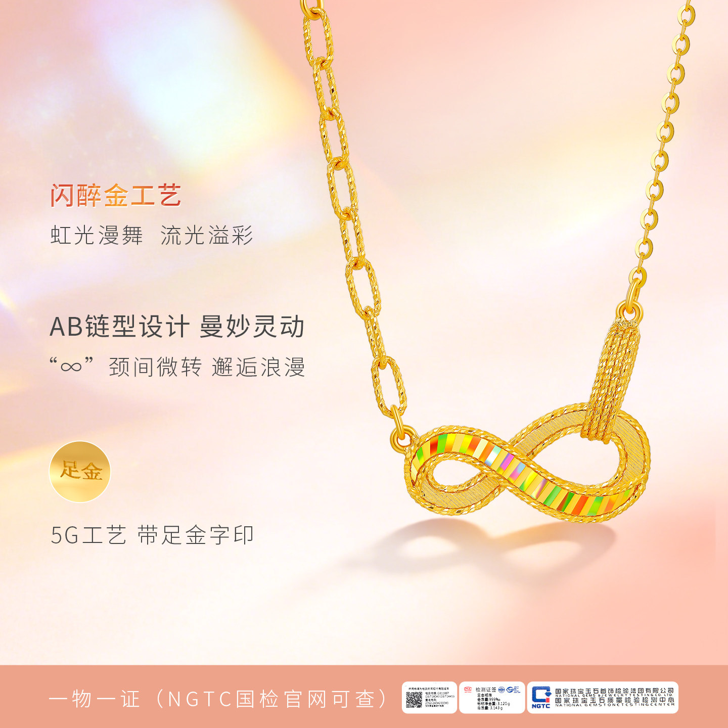 金至尊闪醉金黄金莫比乌斯环项链女炫彩幻彩足金锁骨链生日礼物