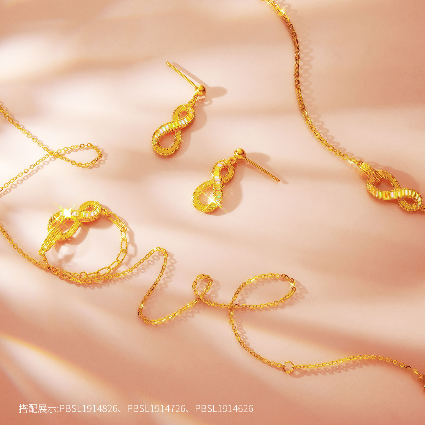 金至尊闪醉金黄金莫比乌斯环项链女炫彩幻彩足金锁骨链生日礼物由