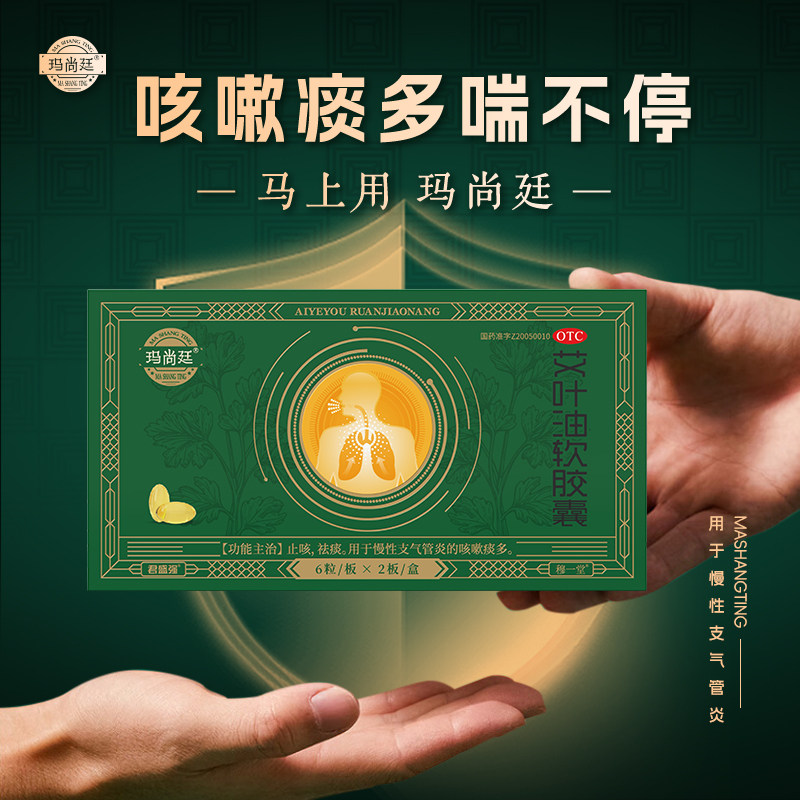 玛尚廷艾叶油软胶襄药止咳祛痰痰多君盛强慢性支气管炎消咳嗽化浓由