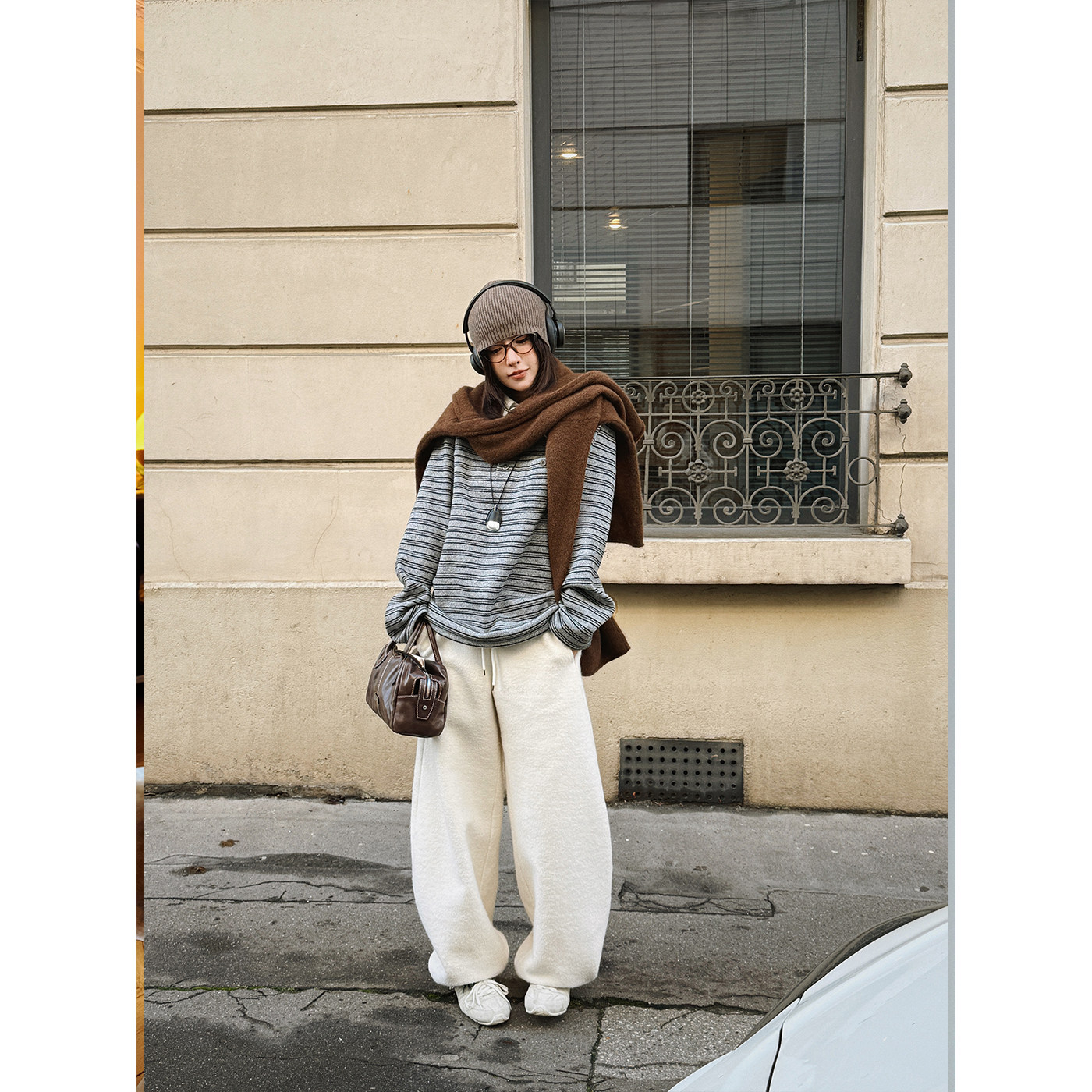 宽松长袖 MOERSHOP 上衣 绵羊毛厚绒polo条纹衫 经典 摩登 新美式由