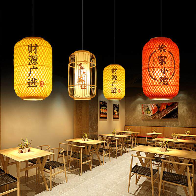 竹编灯笼饭厅茶楼火锅店民宿印字户外防水吊灯中国风竹灯罩 新中式由