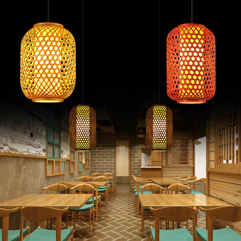 中式 灯 宴会厅红吊灯餐饮火锅店灯笼简约藤艺餐厅民宿酒店竹编日式