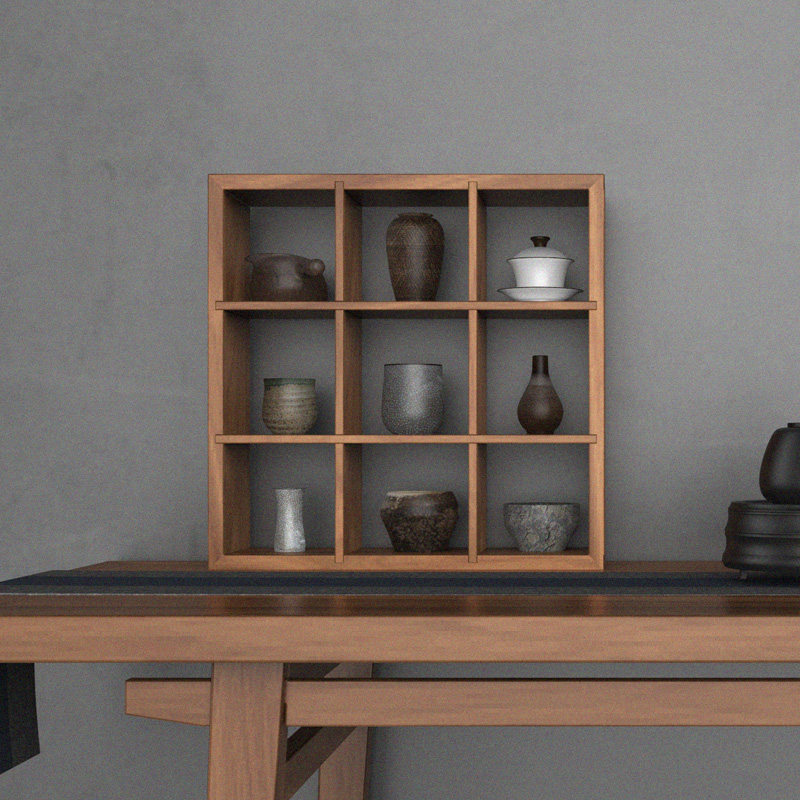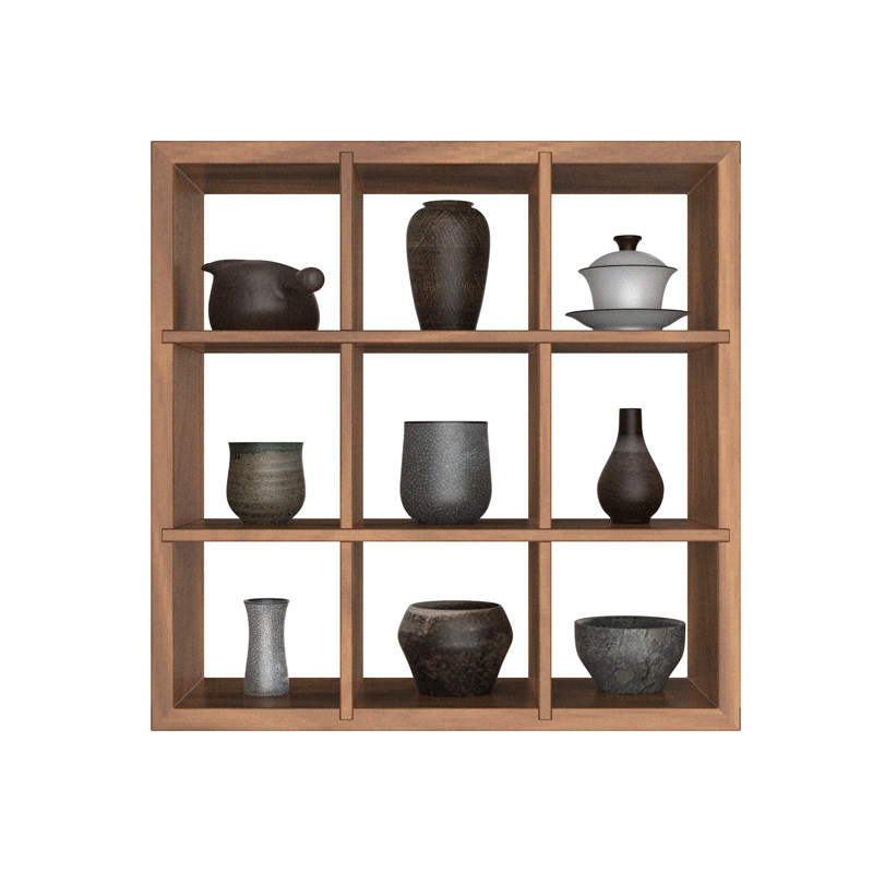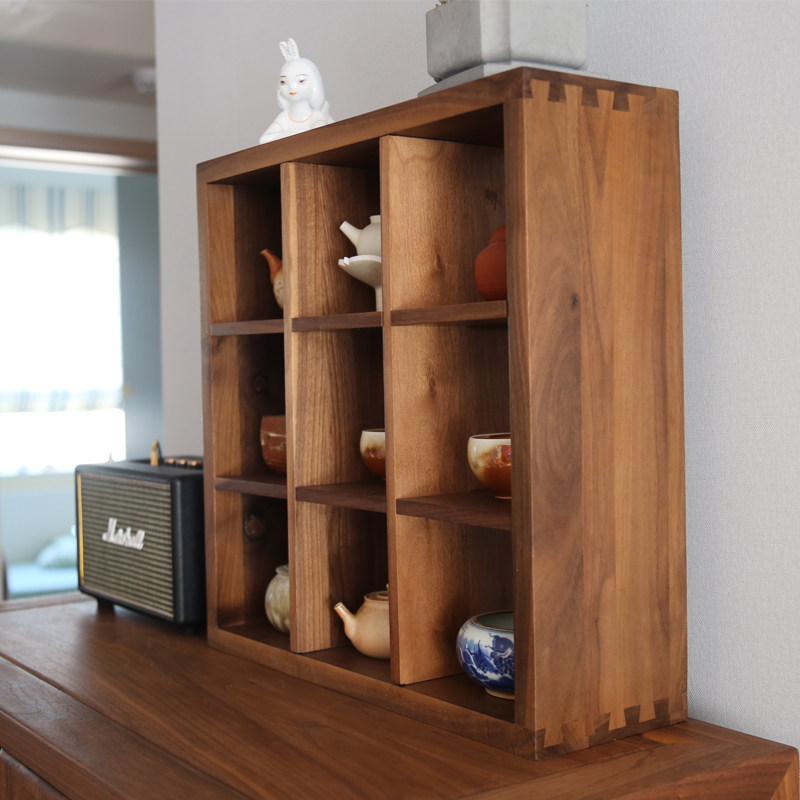 黑胡桃木格子架免漆墙面置物架实木茶家具禅意多宝格瓷器九方格架